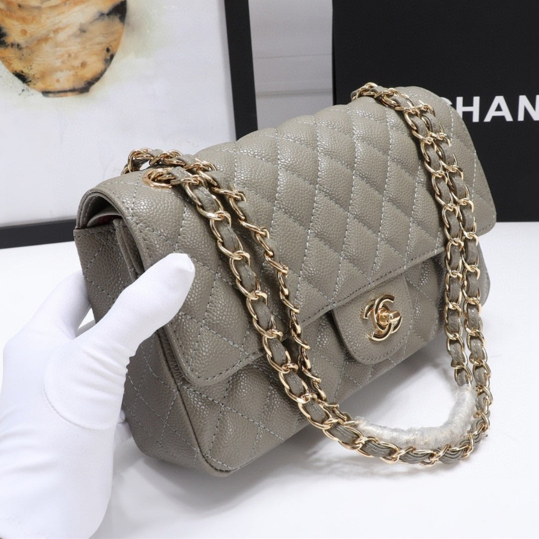 Bolsa CHN Classica detalhes Cinza militar com Dourado 25cm