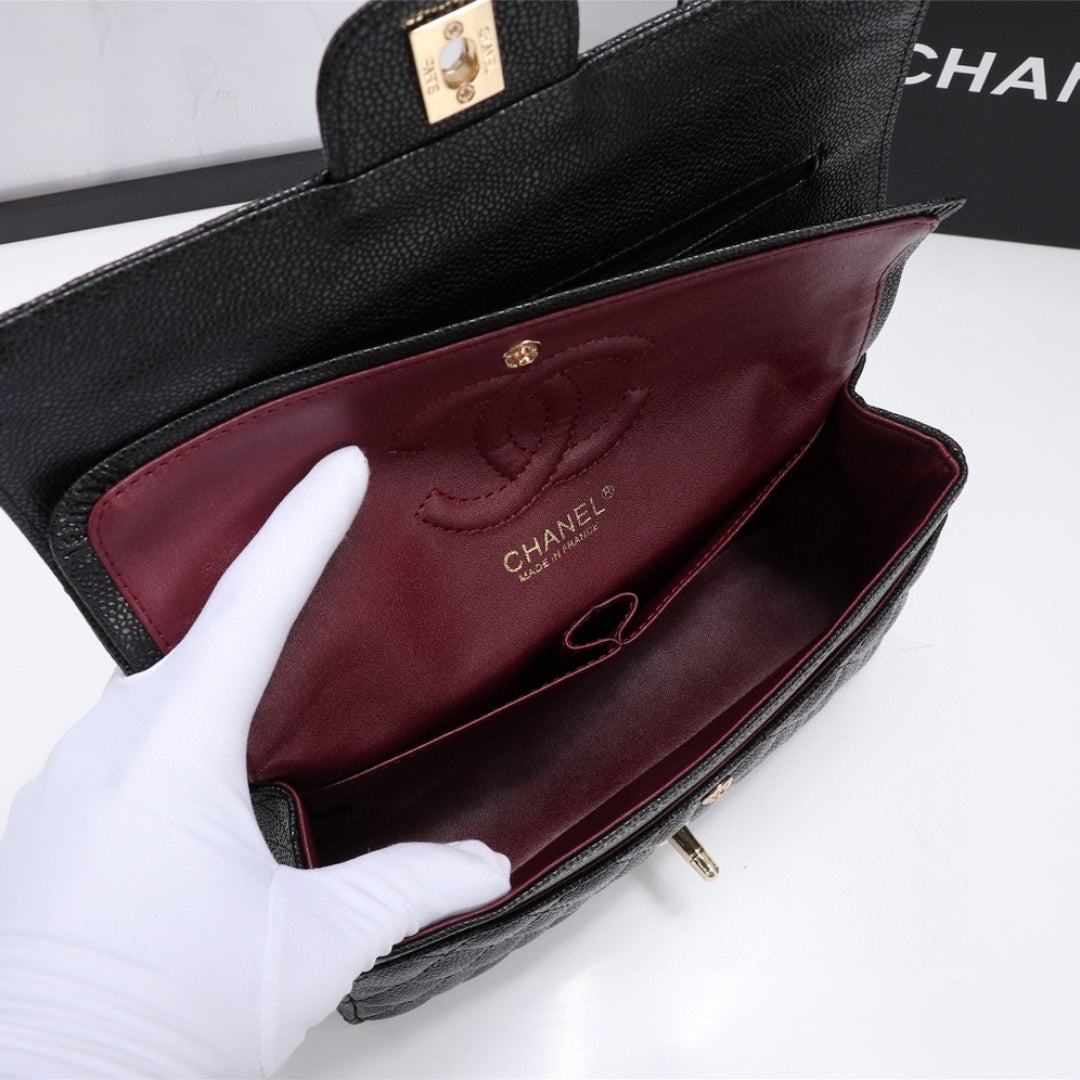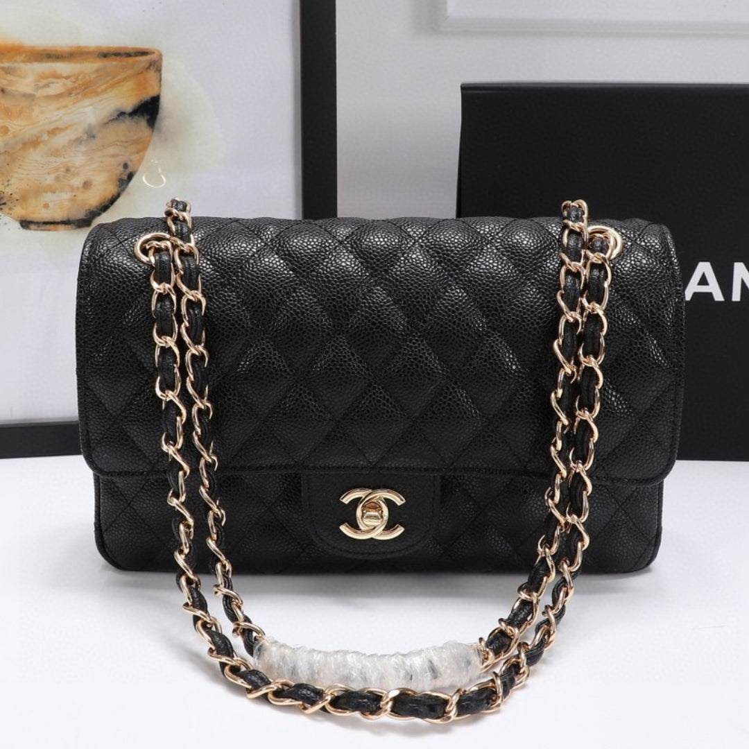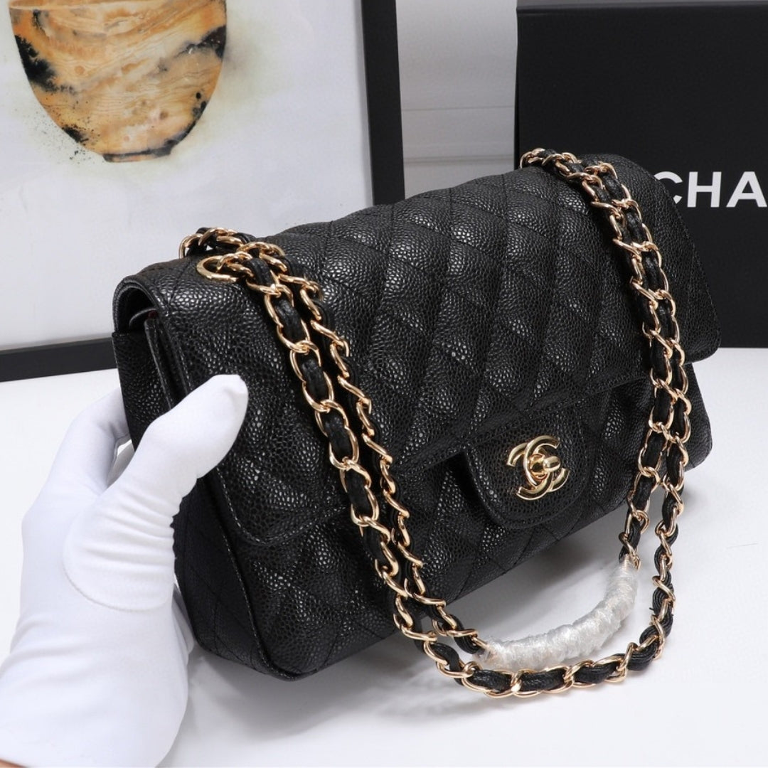 Bolsa CHN Classica detalhes Preto com Dourado 25cm