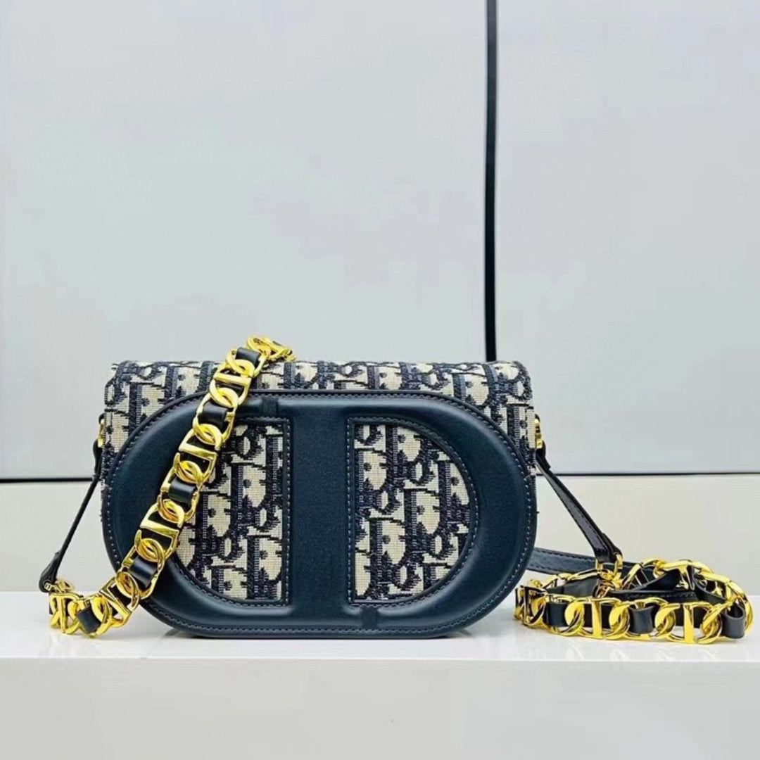 Bolsa Dio Signature Canvas Oblique Azul 19cm