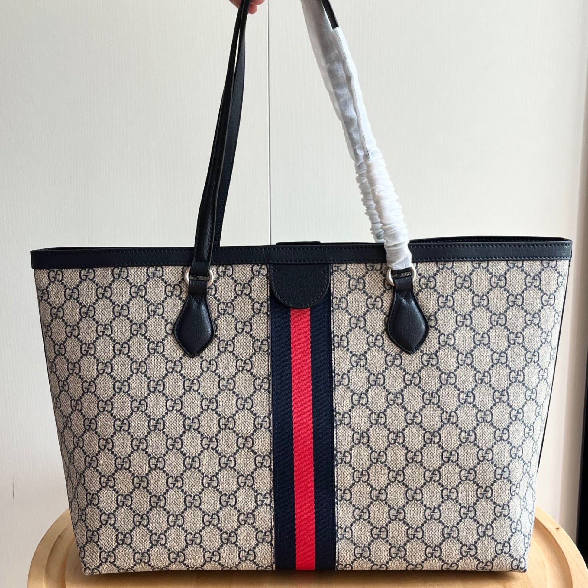 Bolsa GG Ophidia Tote média Supreme Bege web Vermelho e azul 38cm