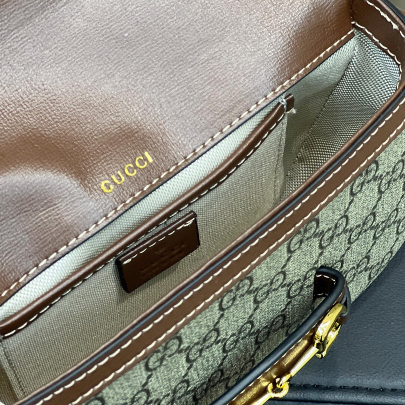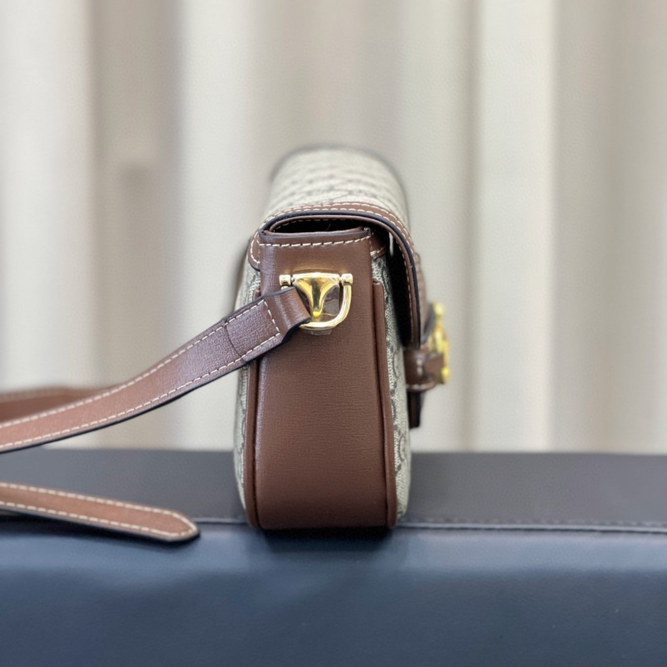 Bolsa GG tiracolo Horsebit 1955 Canvas com marrom pequena 20cm