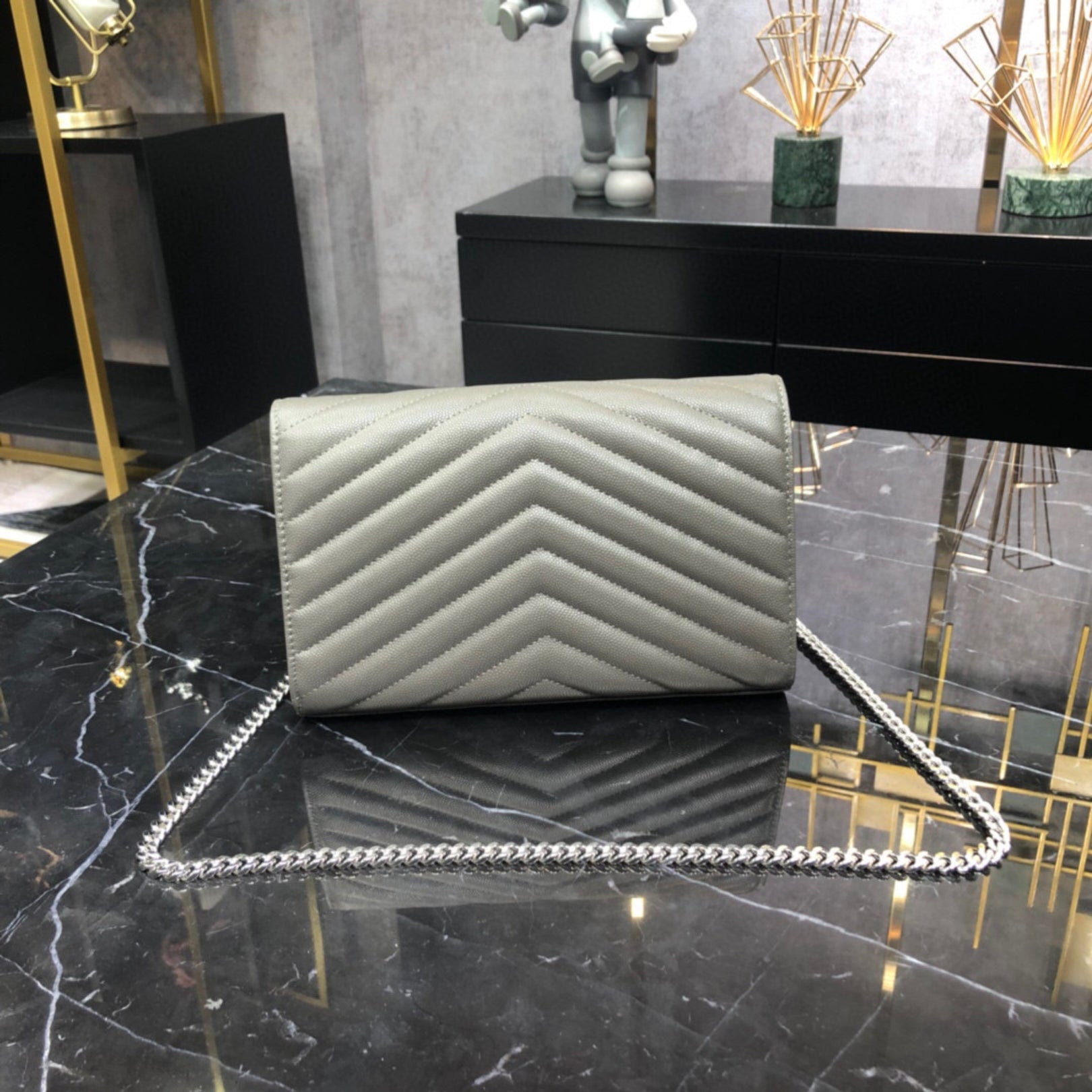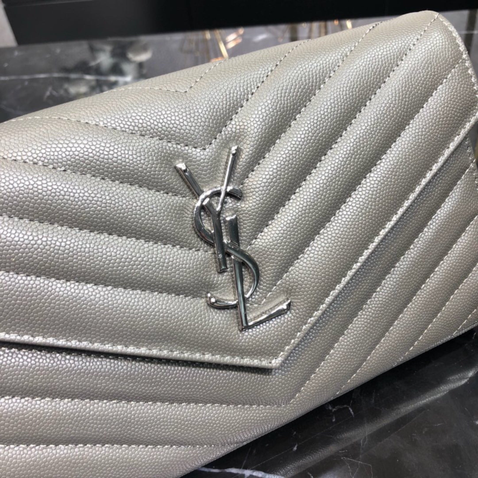 Bolsa YSL Monograma Pequena Cinza