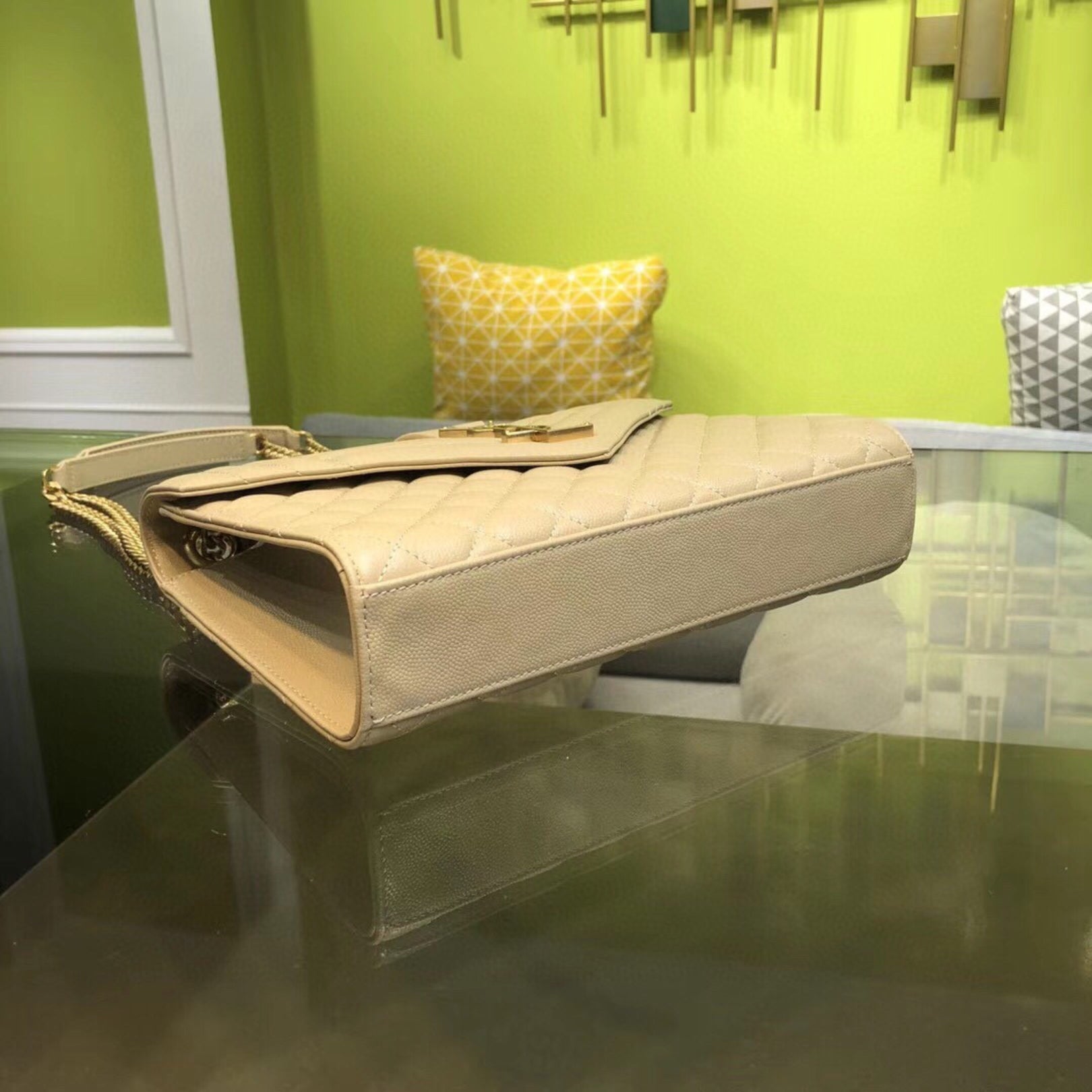 Bolsa YSL tiracolo Envelope Média bege 24cm