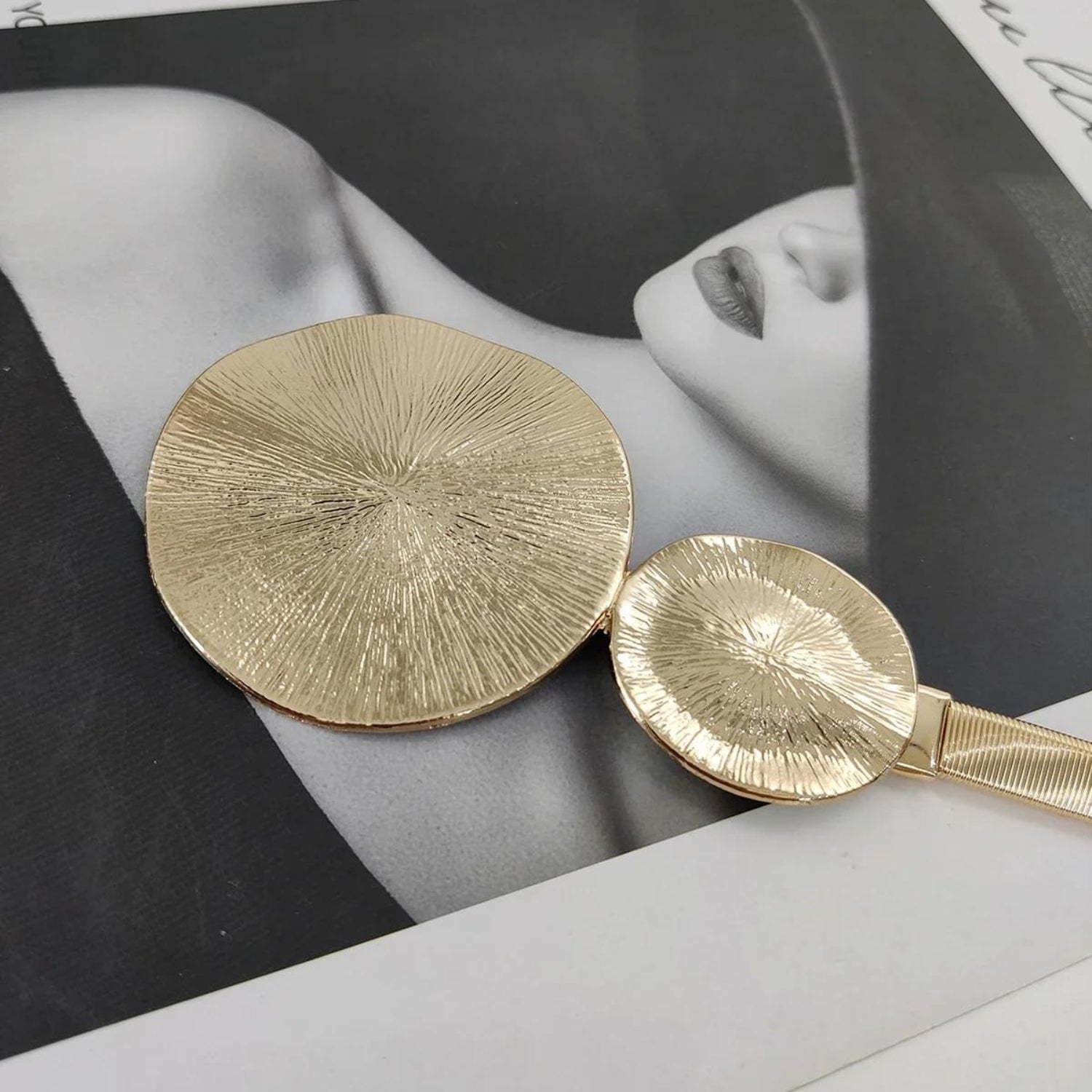 Apresentando o Cinto Feminino Waist Luxury Chain, um acessório que exala sofisticação e requinte. Este cinto é mais do que simplesmente uma peça de vestuário; é uma declaração de elegância, estilo e sofisticação que eleva instantaneamente qualquer visual. Com seus medalhões em formato de círculo, este cinto adiciona um toque de glamour a qualquer roupa, desde um deslumbrante vestido de festa até um conjunto casual do dia a dia. Seu design refinado é uma afirmação de moda por si só, destacando-se com graciosidade em qualquer paleta de cores.
