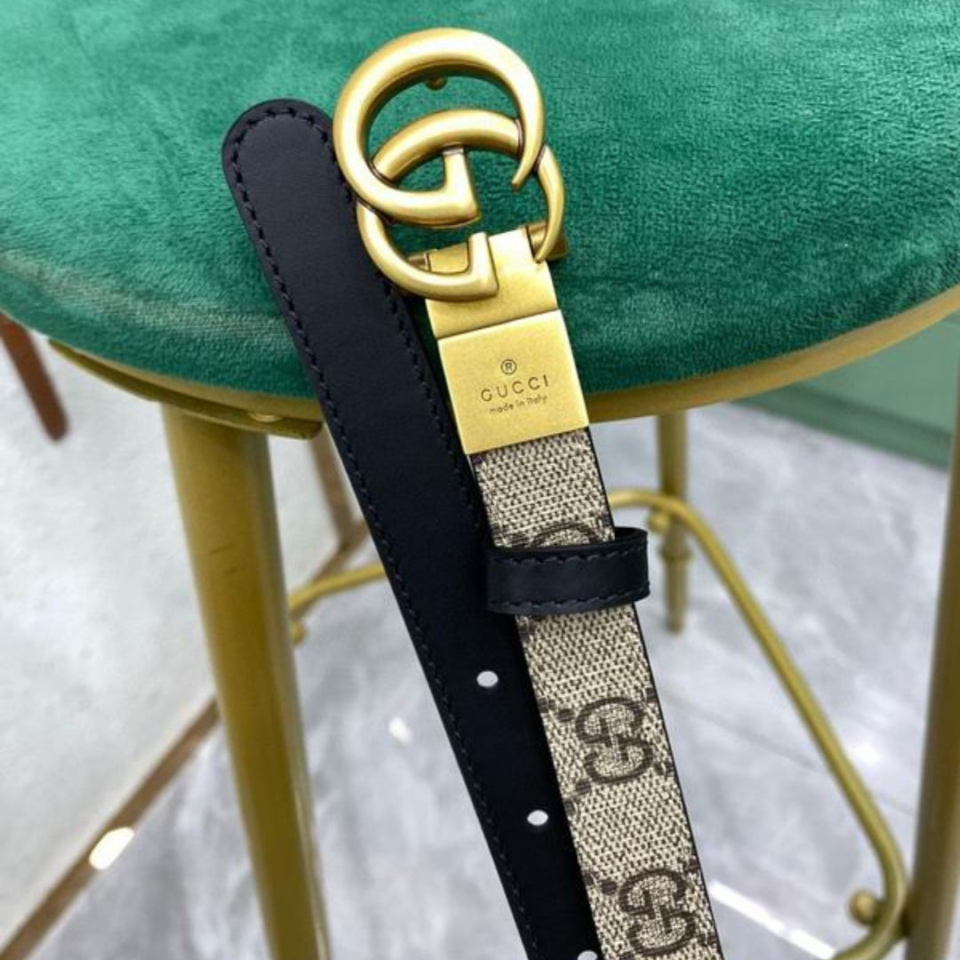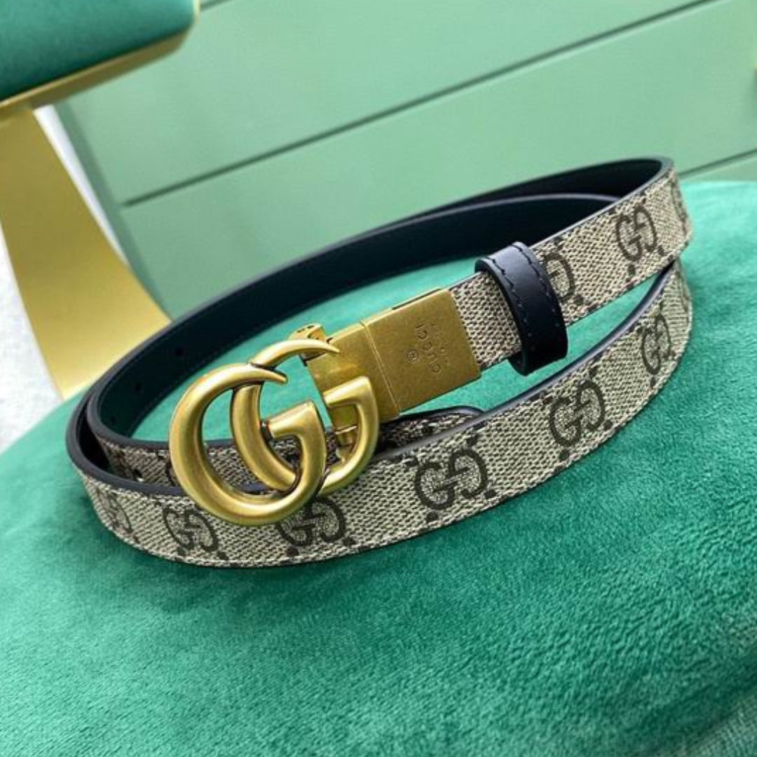 Cinto GG Canvas Bege Dupla Face com Marrom