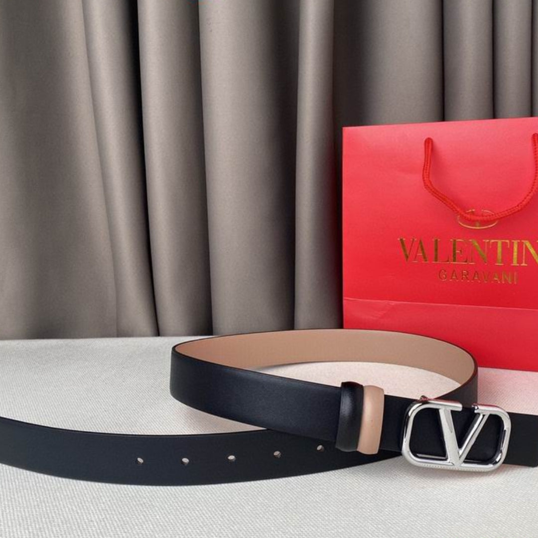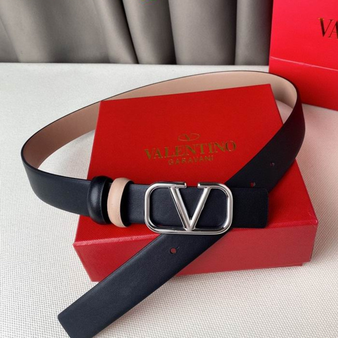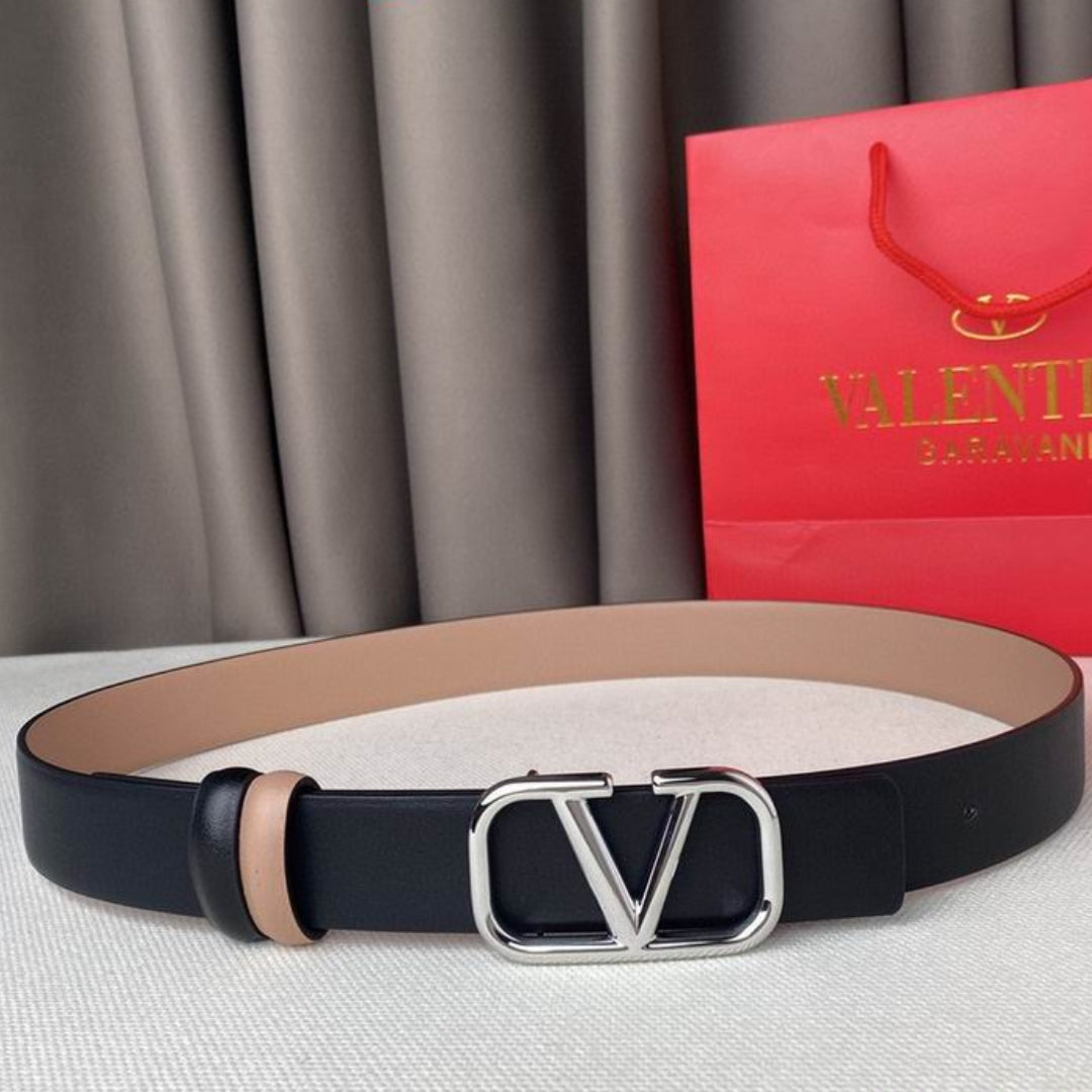 Cinto VLTN Dupla face Pequeno Preto e Rose Prata 2cm de largura