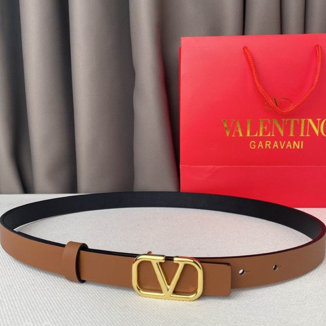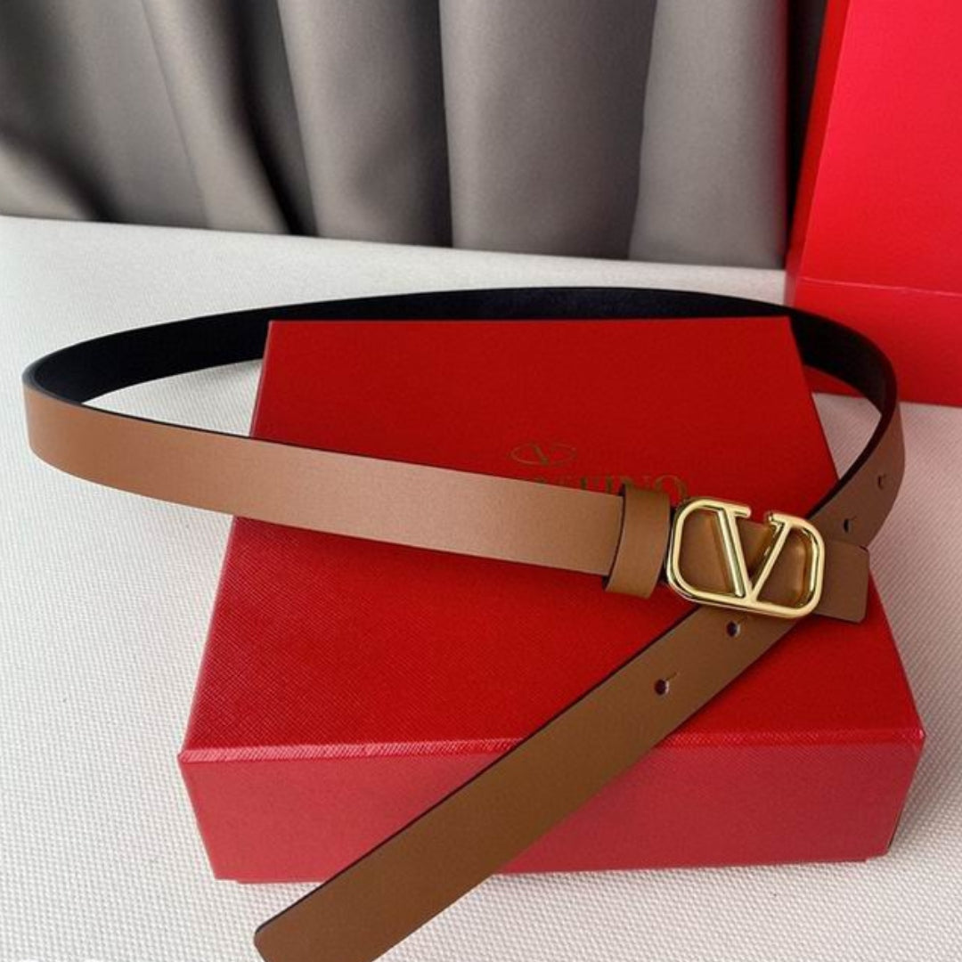 Cinto VLTN Pequeno Marrom e Dourado 2cm de largura