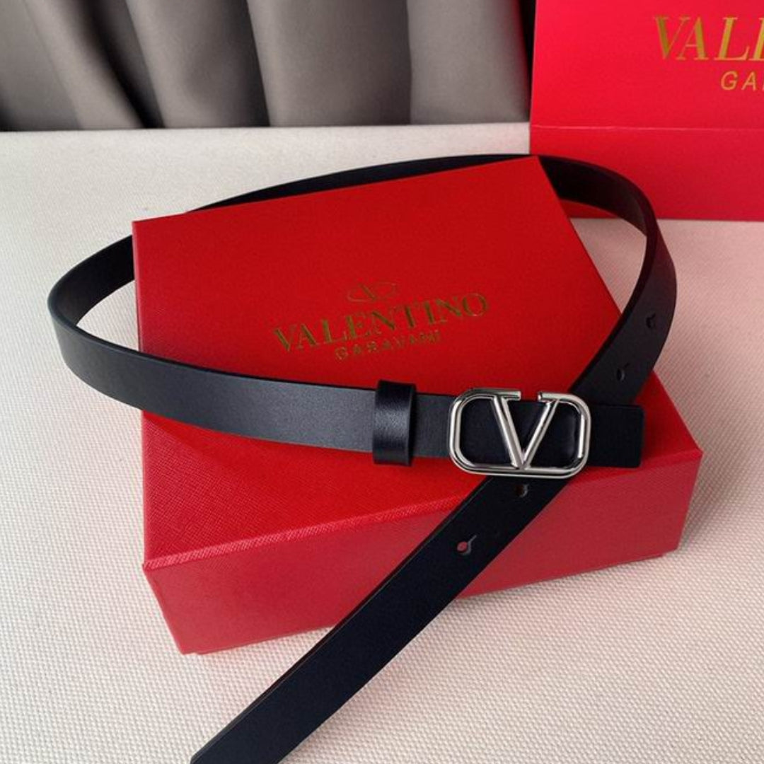 Cinto VLTN Pequeno Preto e Prata 2cm de largura