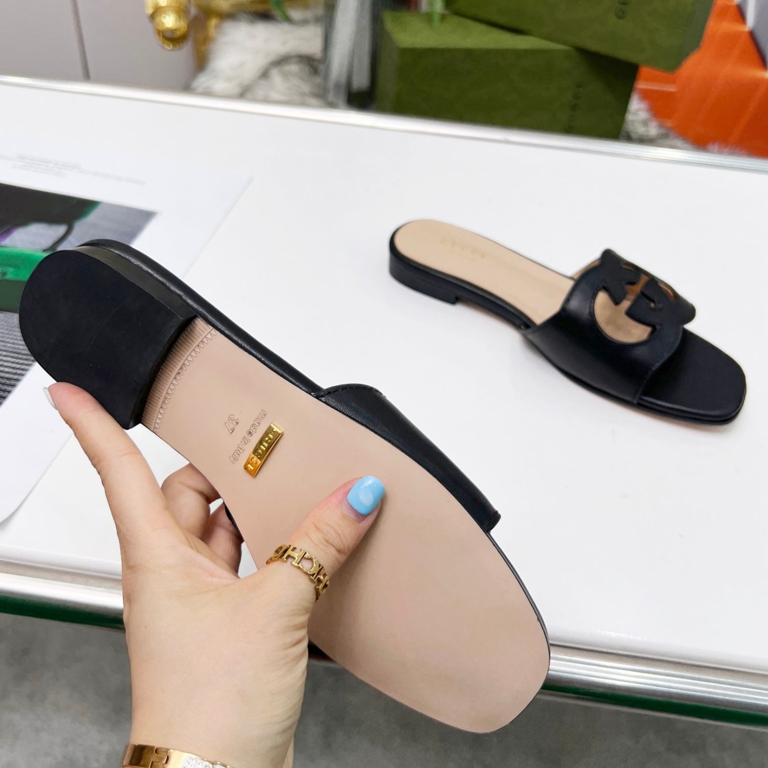 Sandalia GG de couro com Interlocking GG Preto