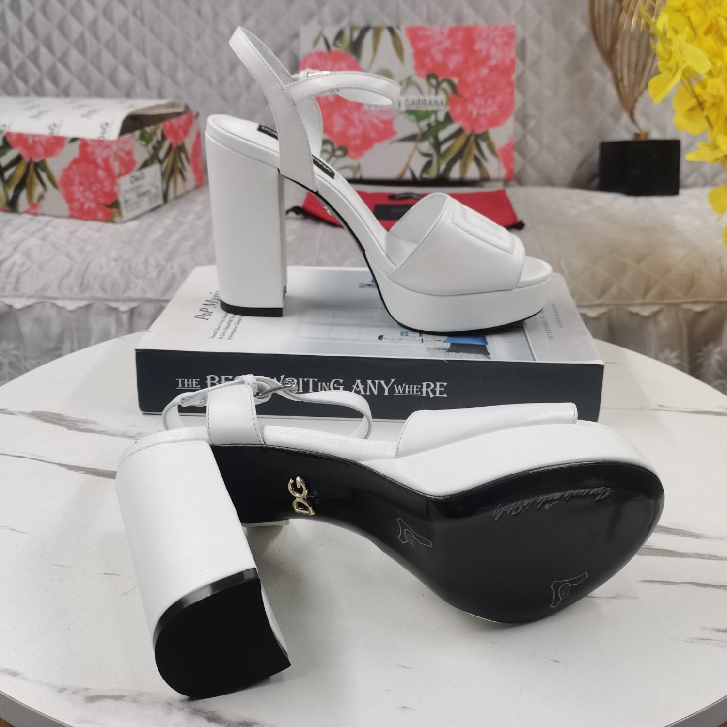 Sandalia DG Plataforma Branco com Logo Salto 11,5cm