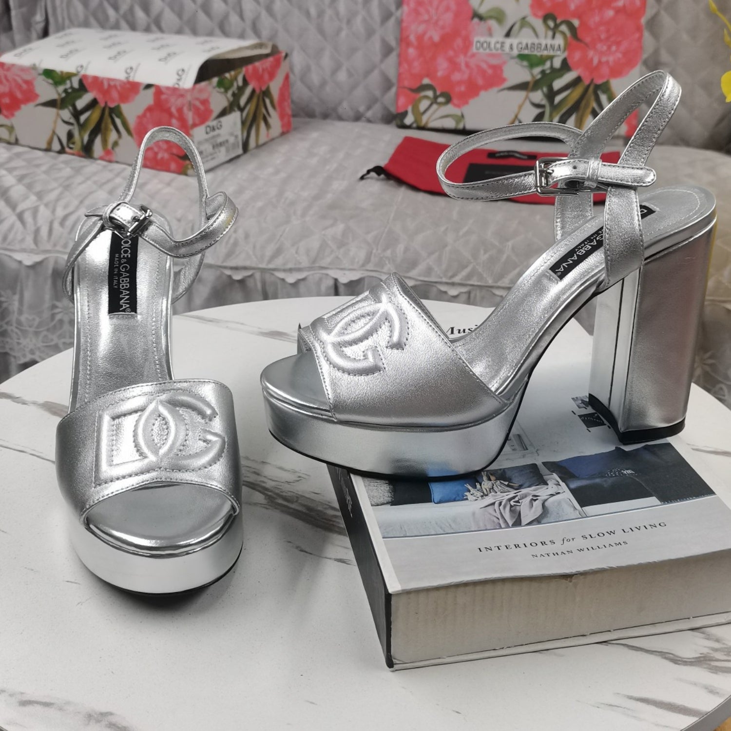 Sandalia DG Plataforma Prateado com Logo Salto 11,5cm