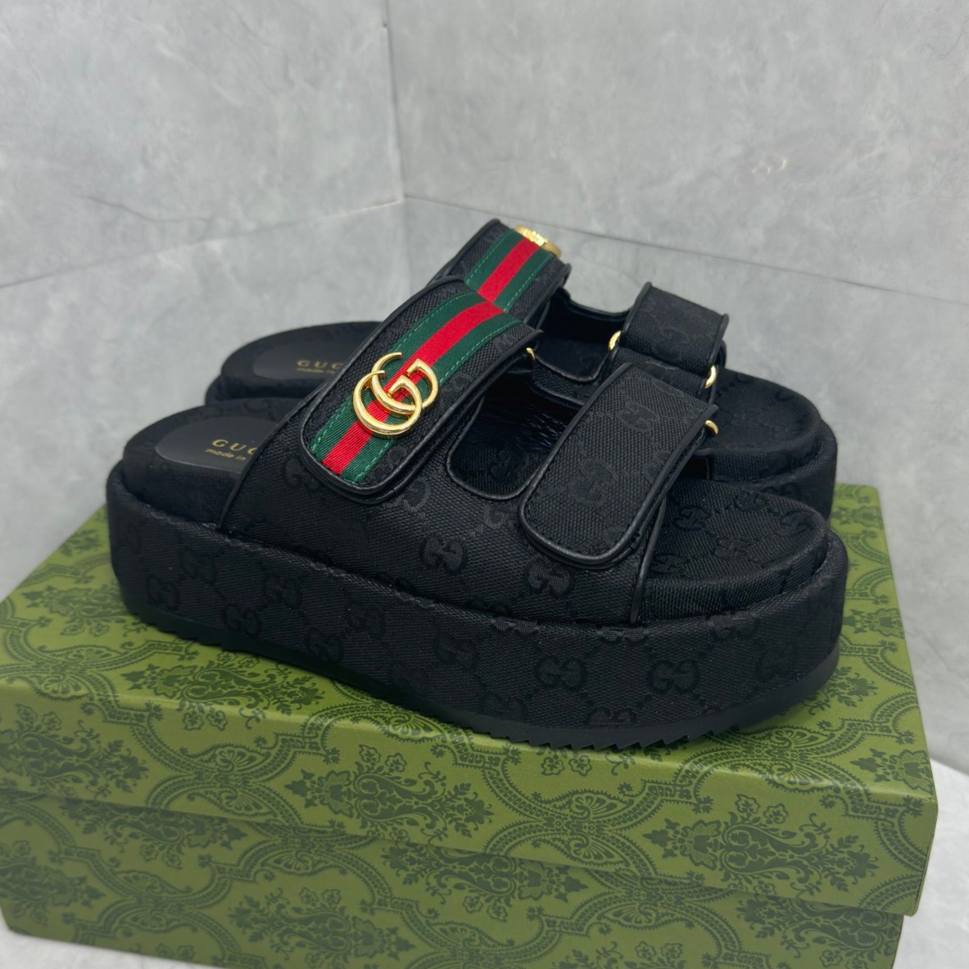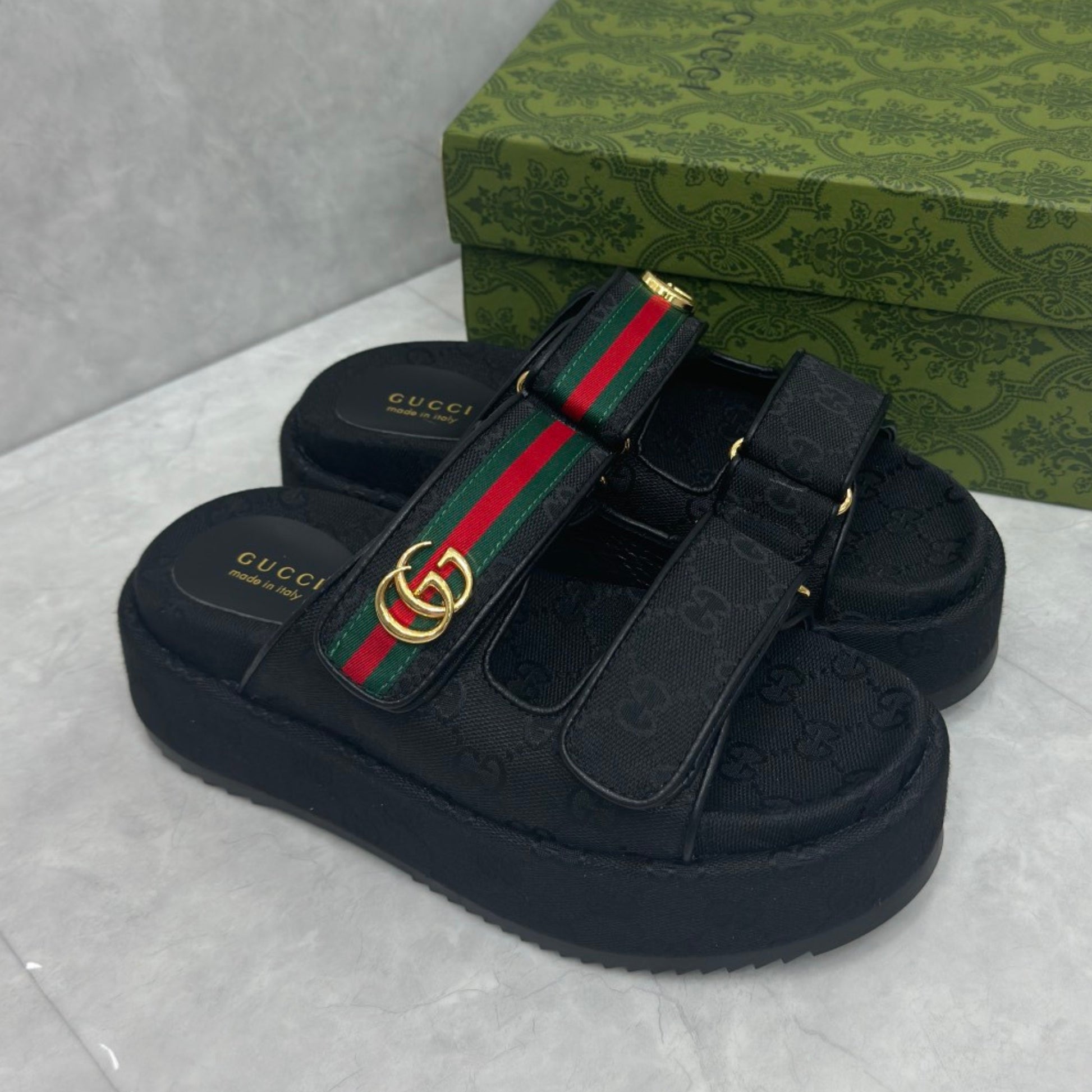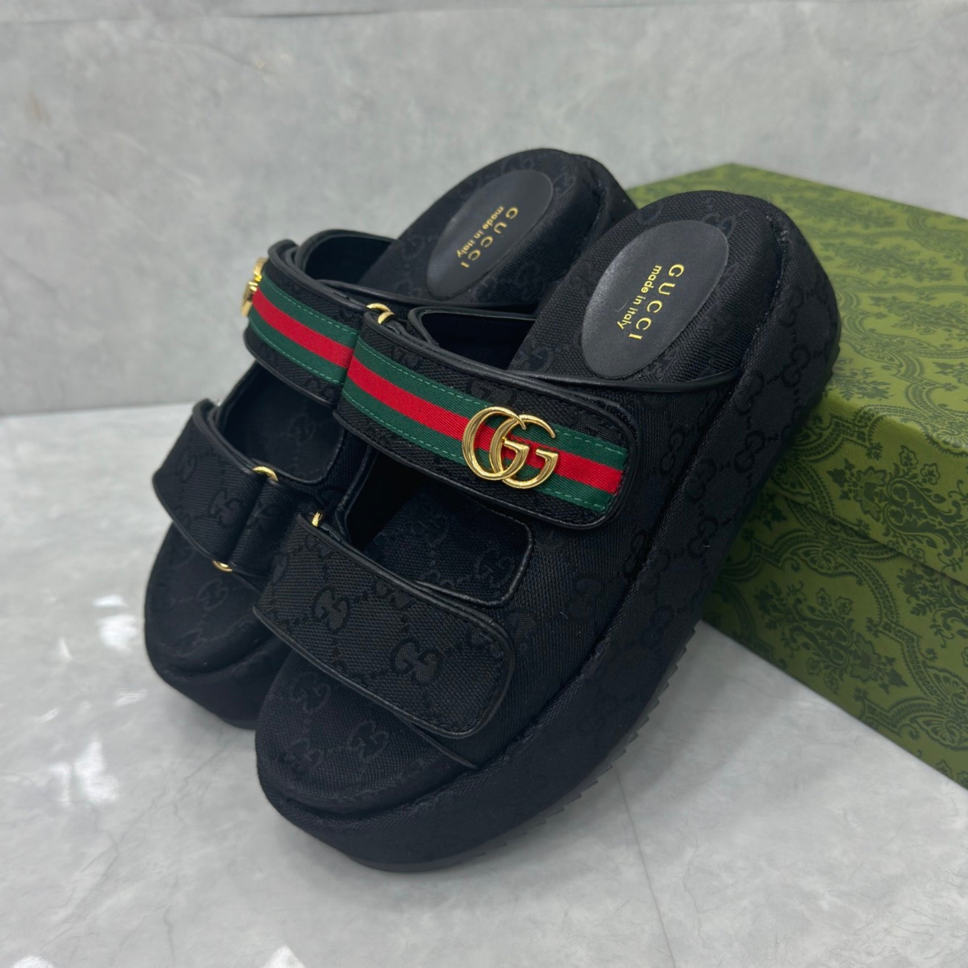 Sandália GG Plataforma Slider com Double com preto e faixa
