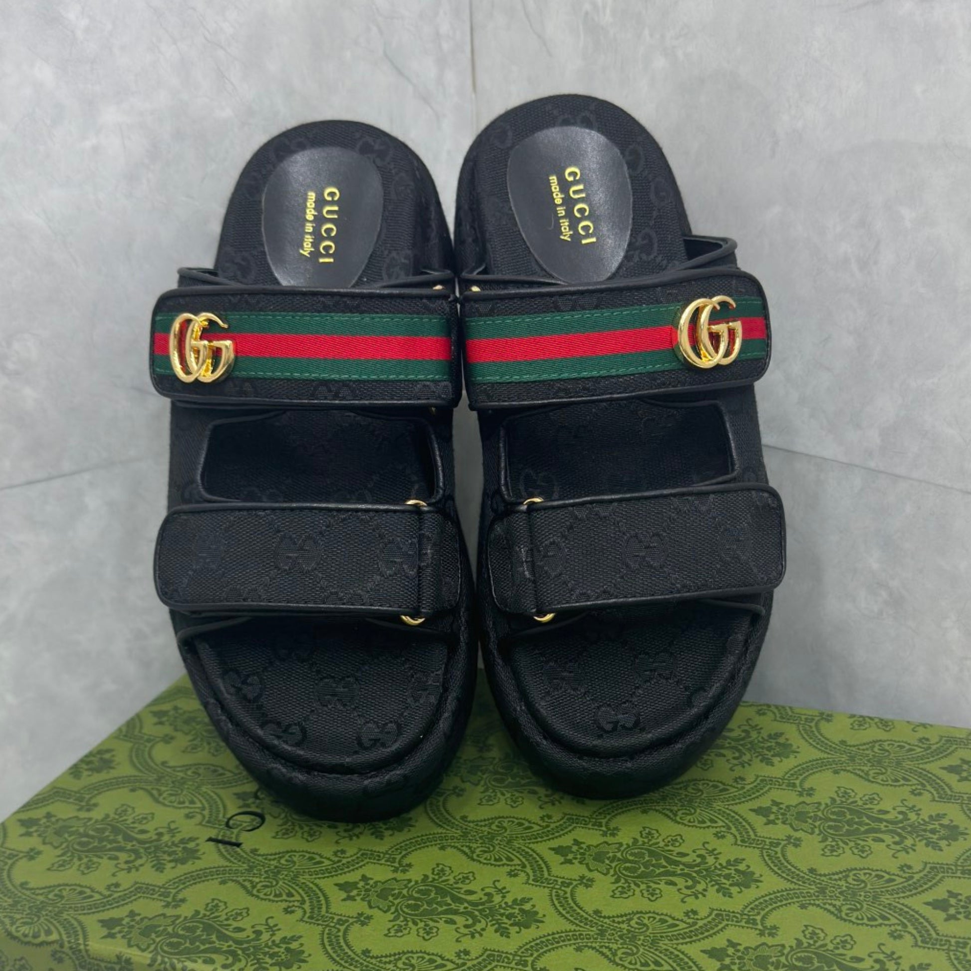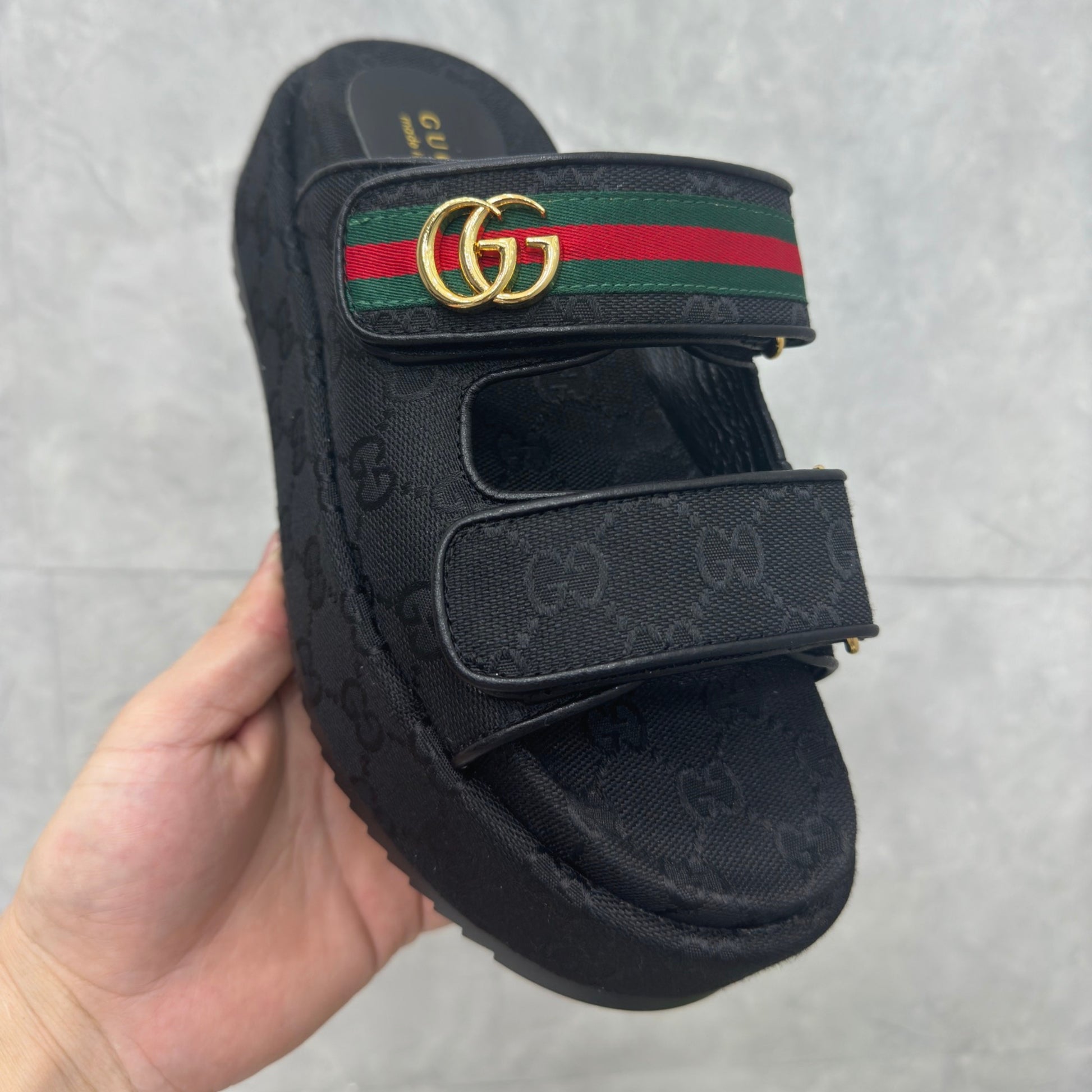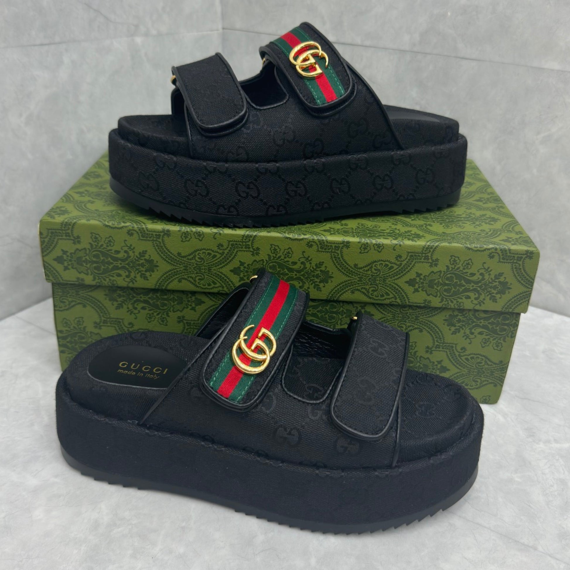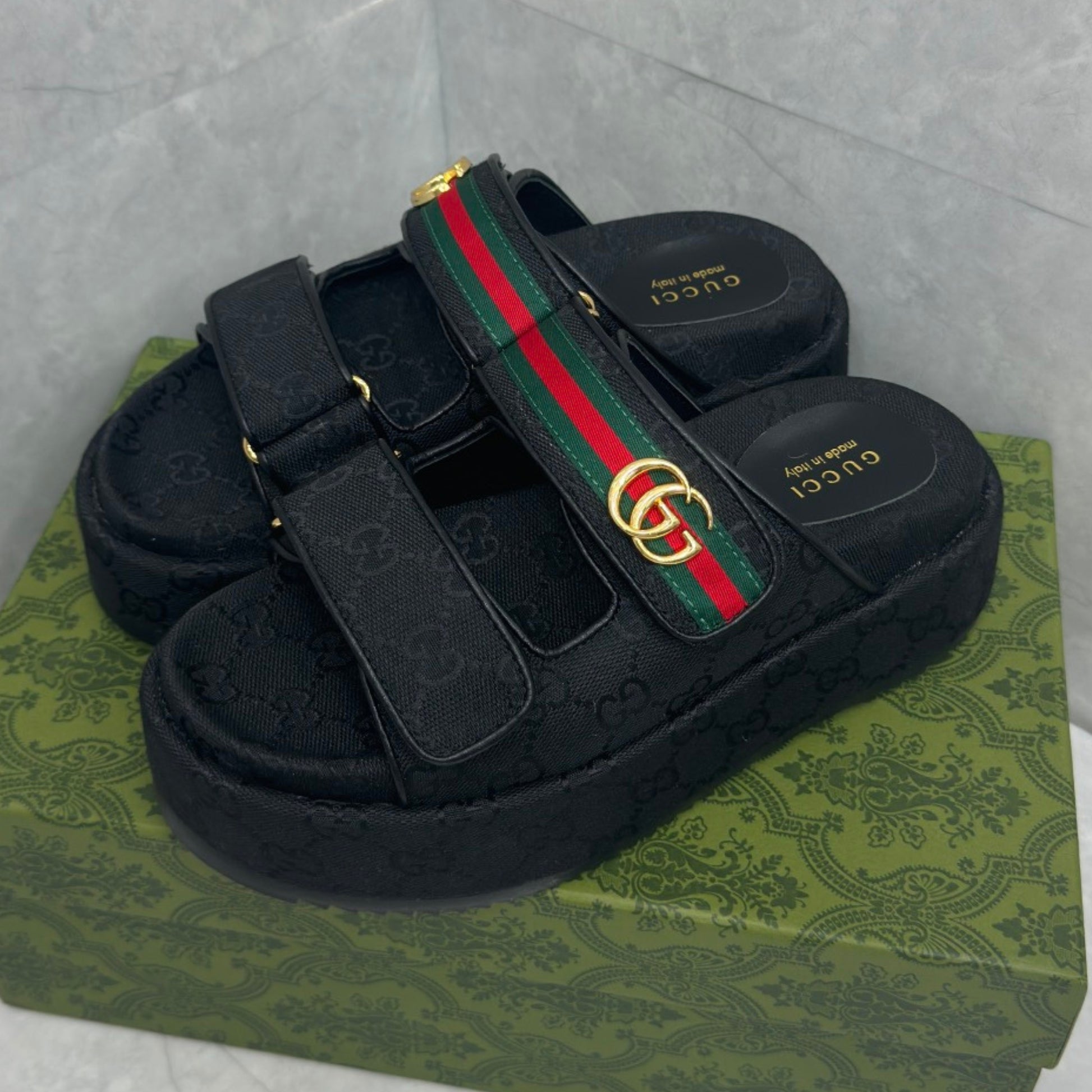 Sandália GG Plataforma Slider com Double com preto e faixa
