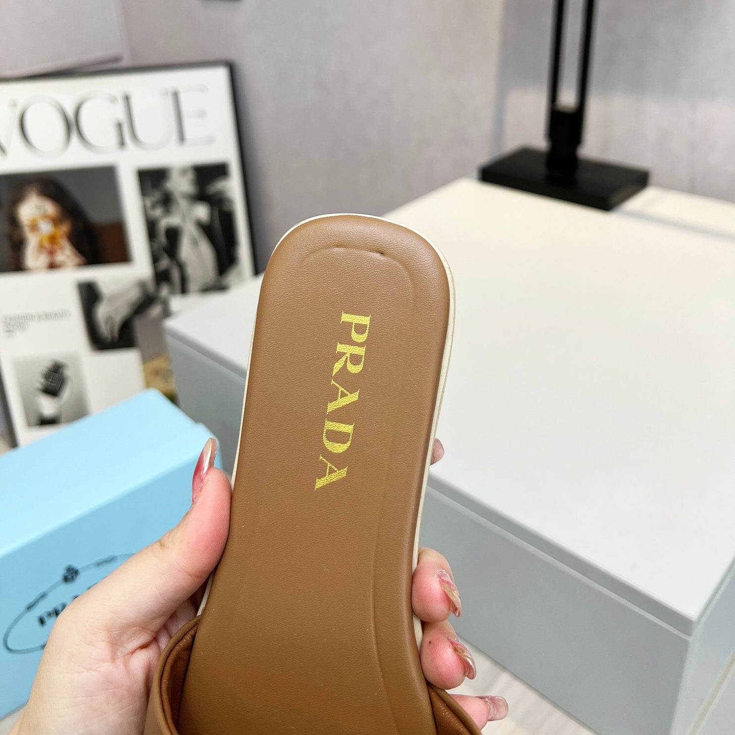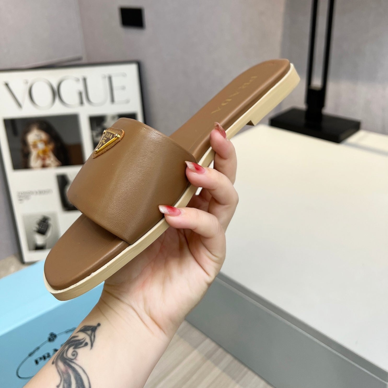 Sandalia PRD Bege couro com logo