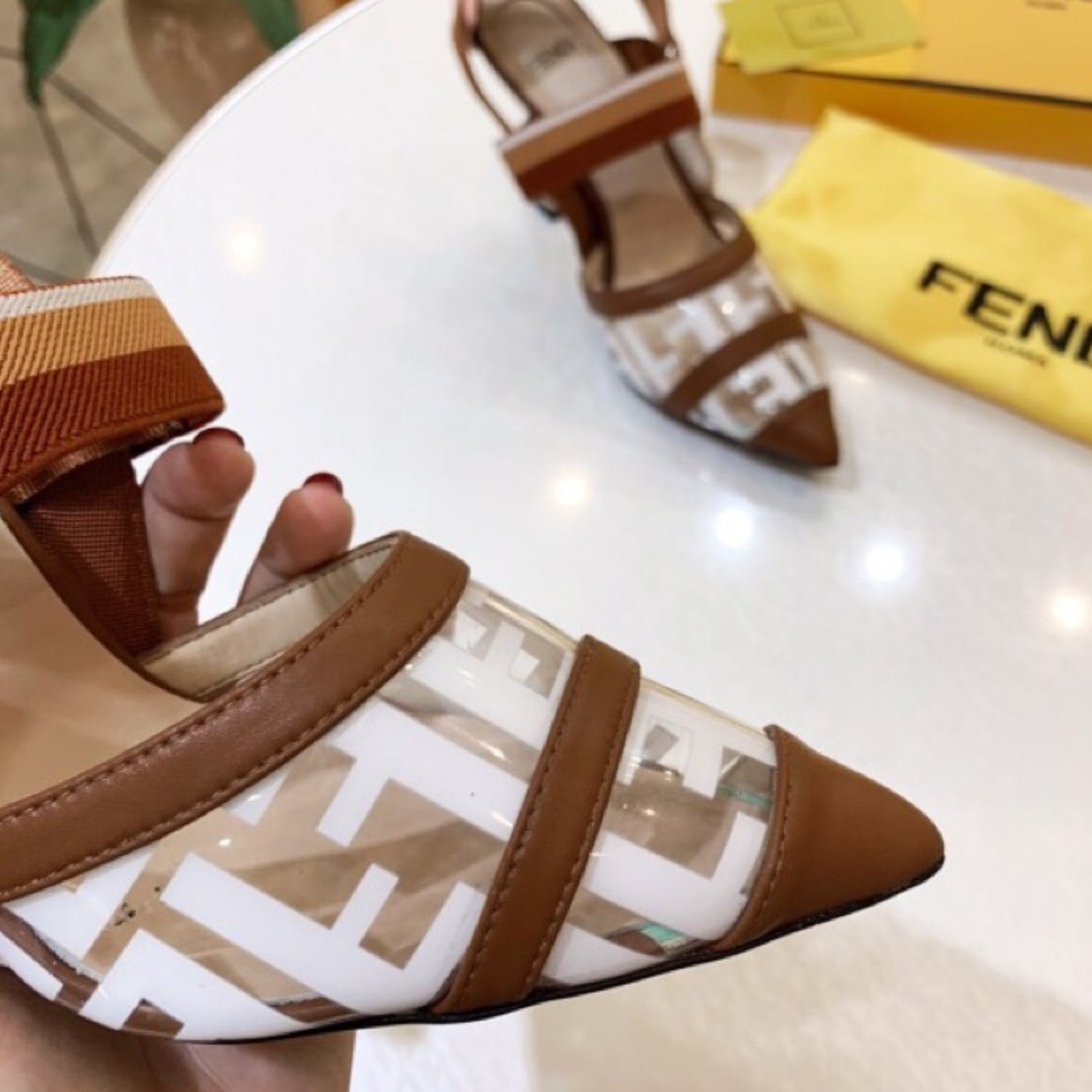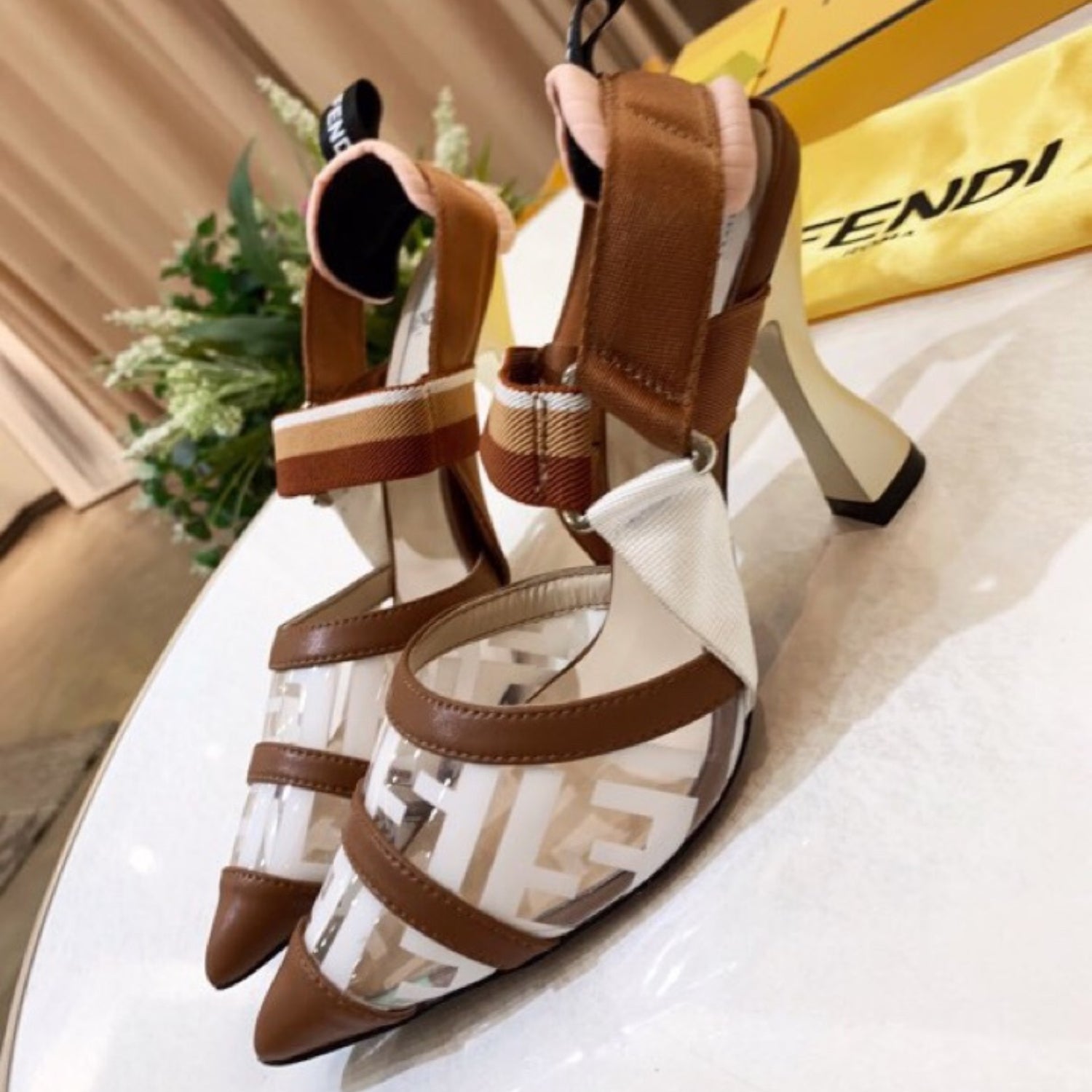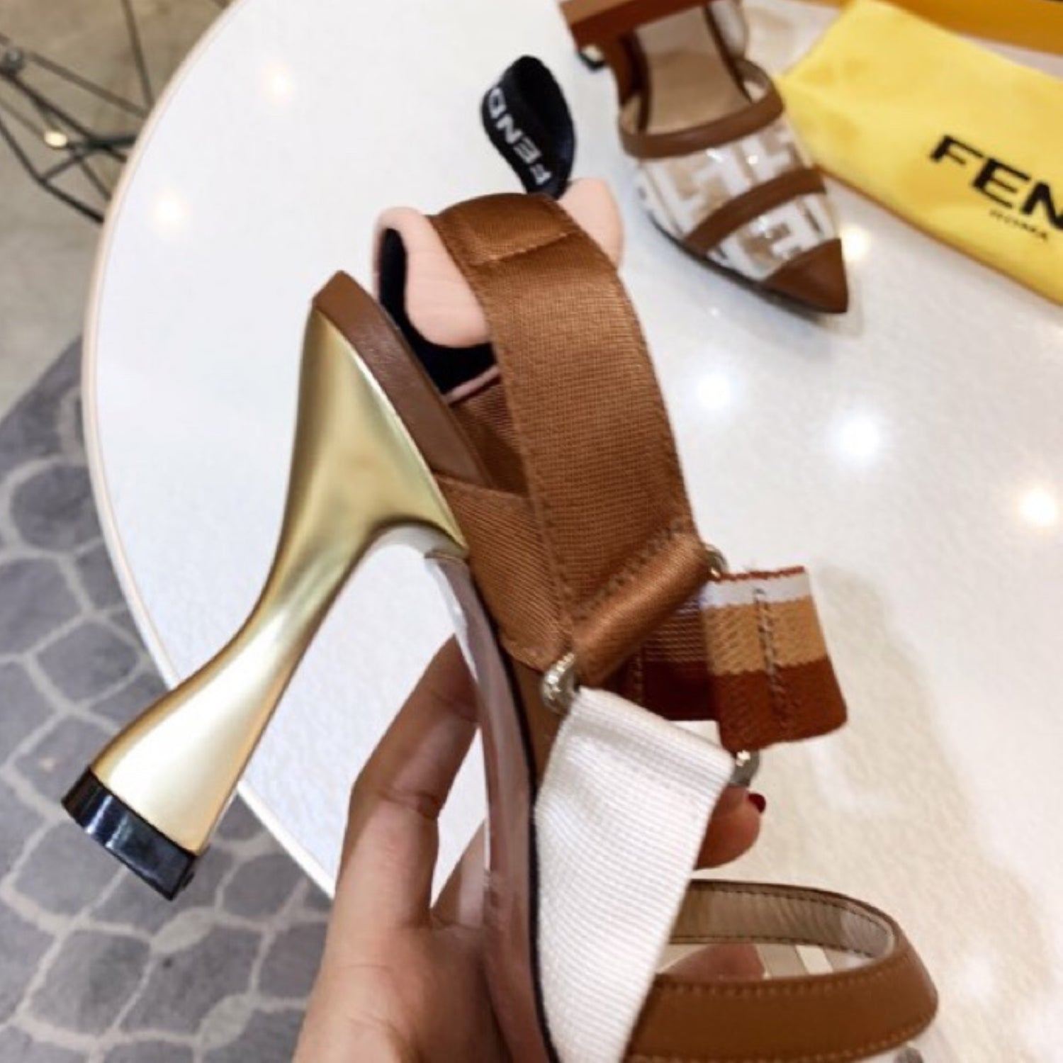 Scarpin FND Marrom com Canvas couro e salto 9,5cm