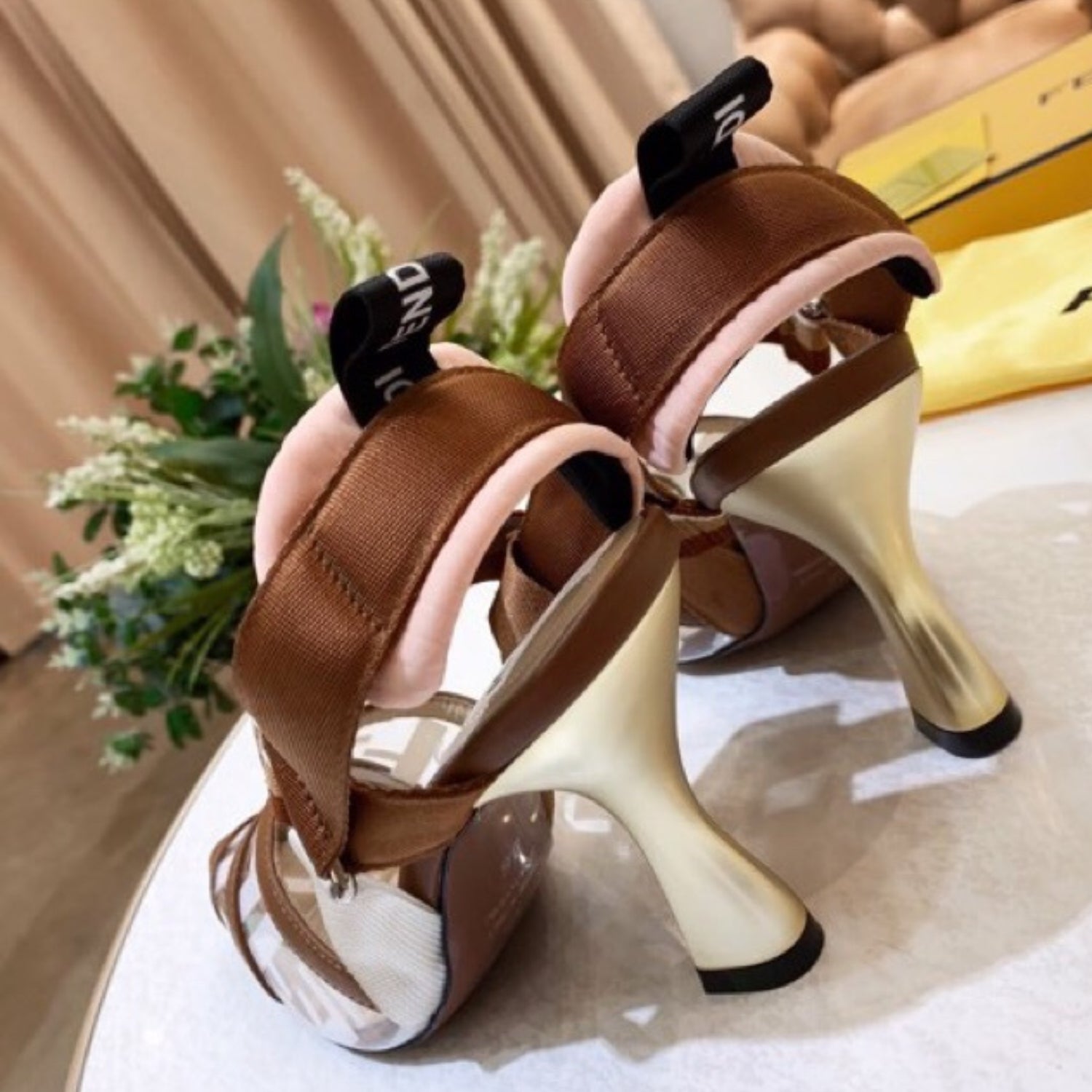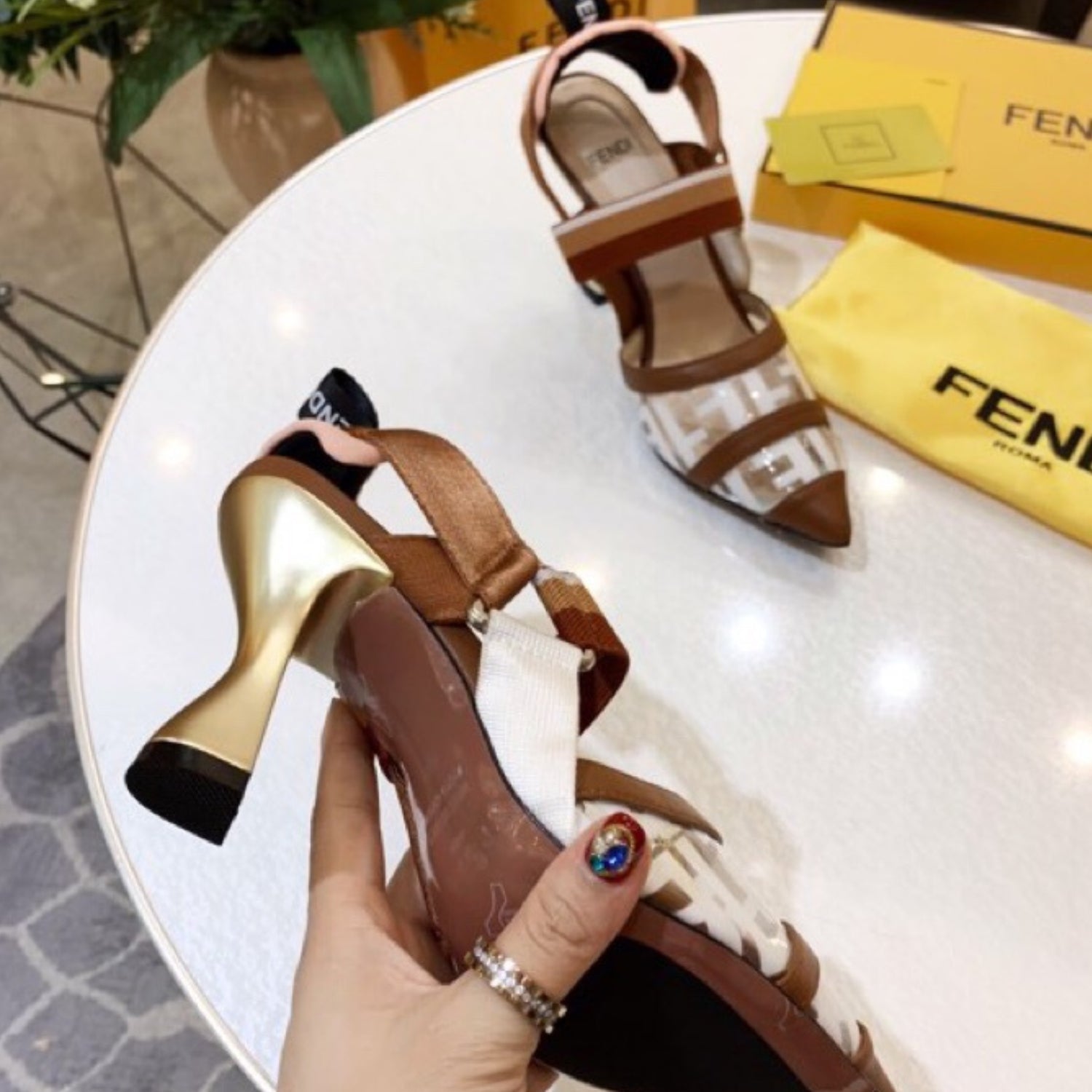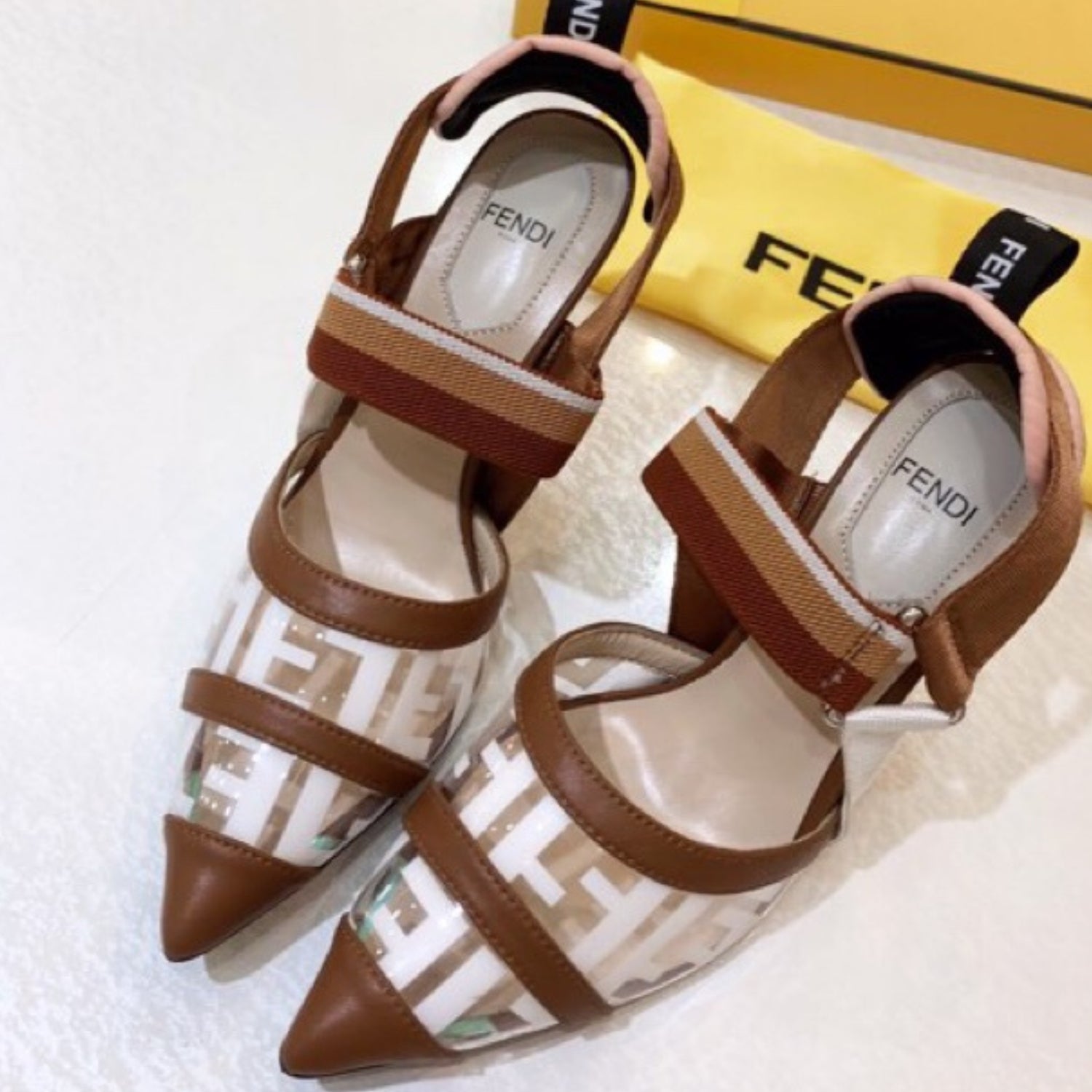 Scarpin FND Marrom com Canvas couro e salto 9,5cm
