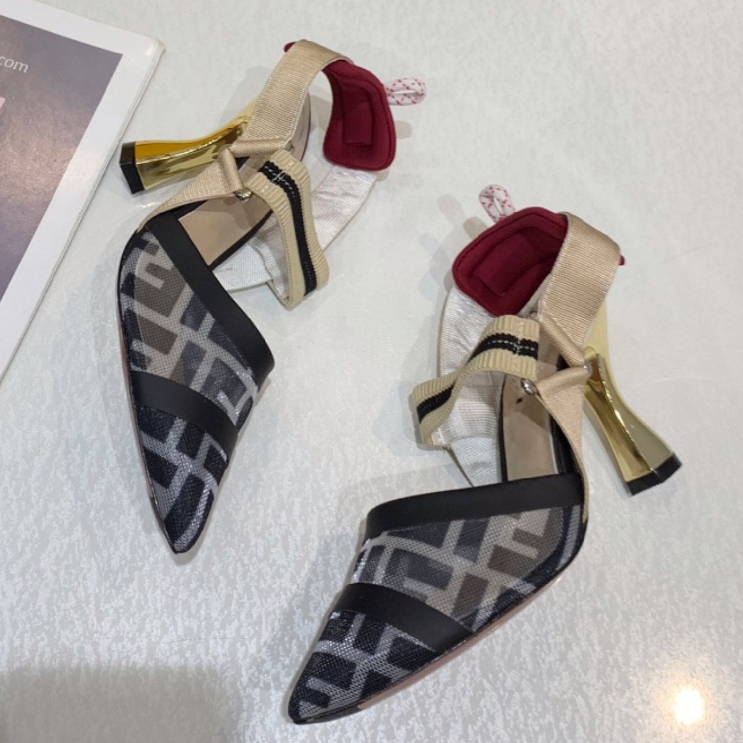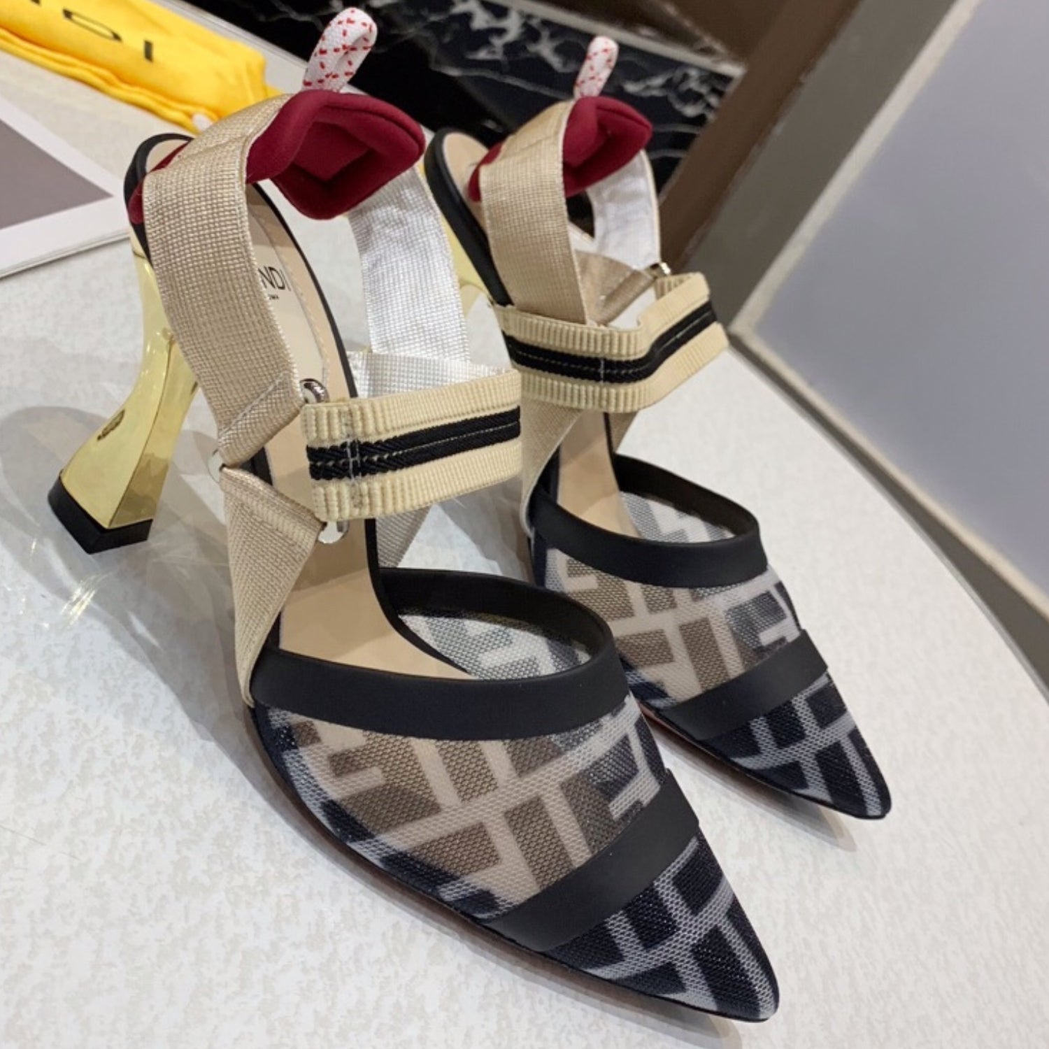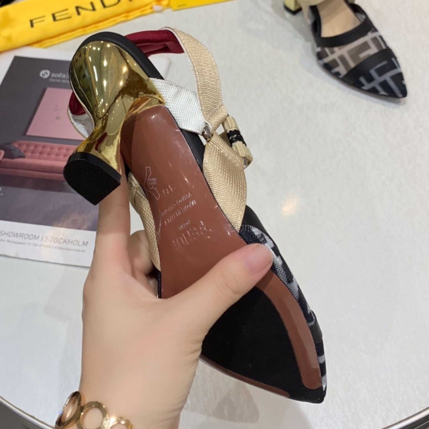 Scarpin FND Preto com Bege com Canvas couro e salto dourado 9,5cm