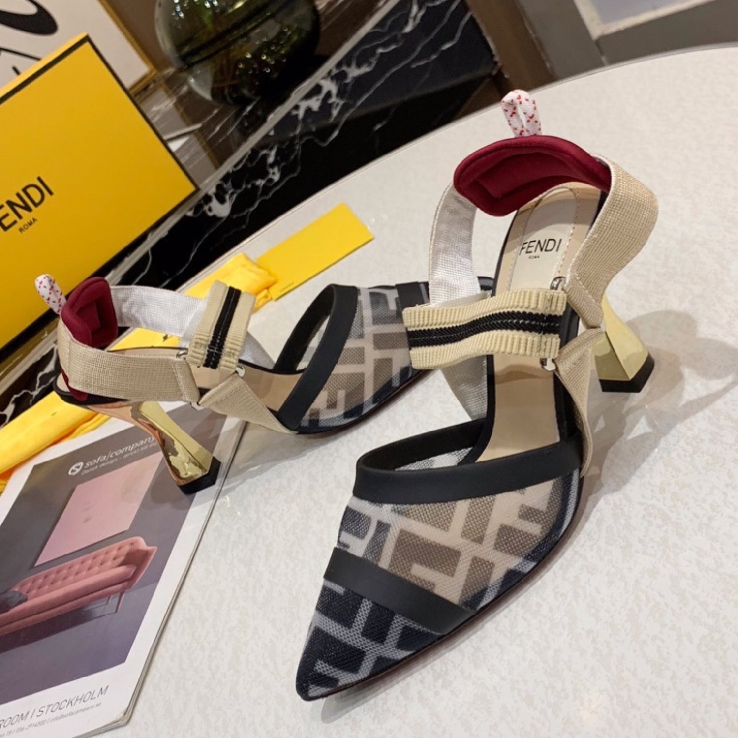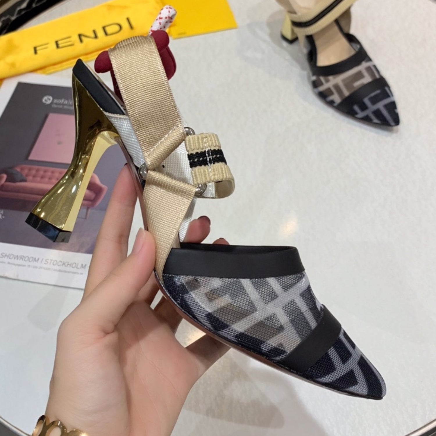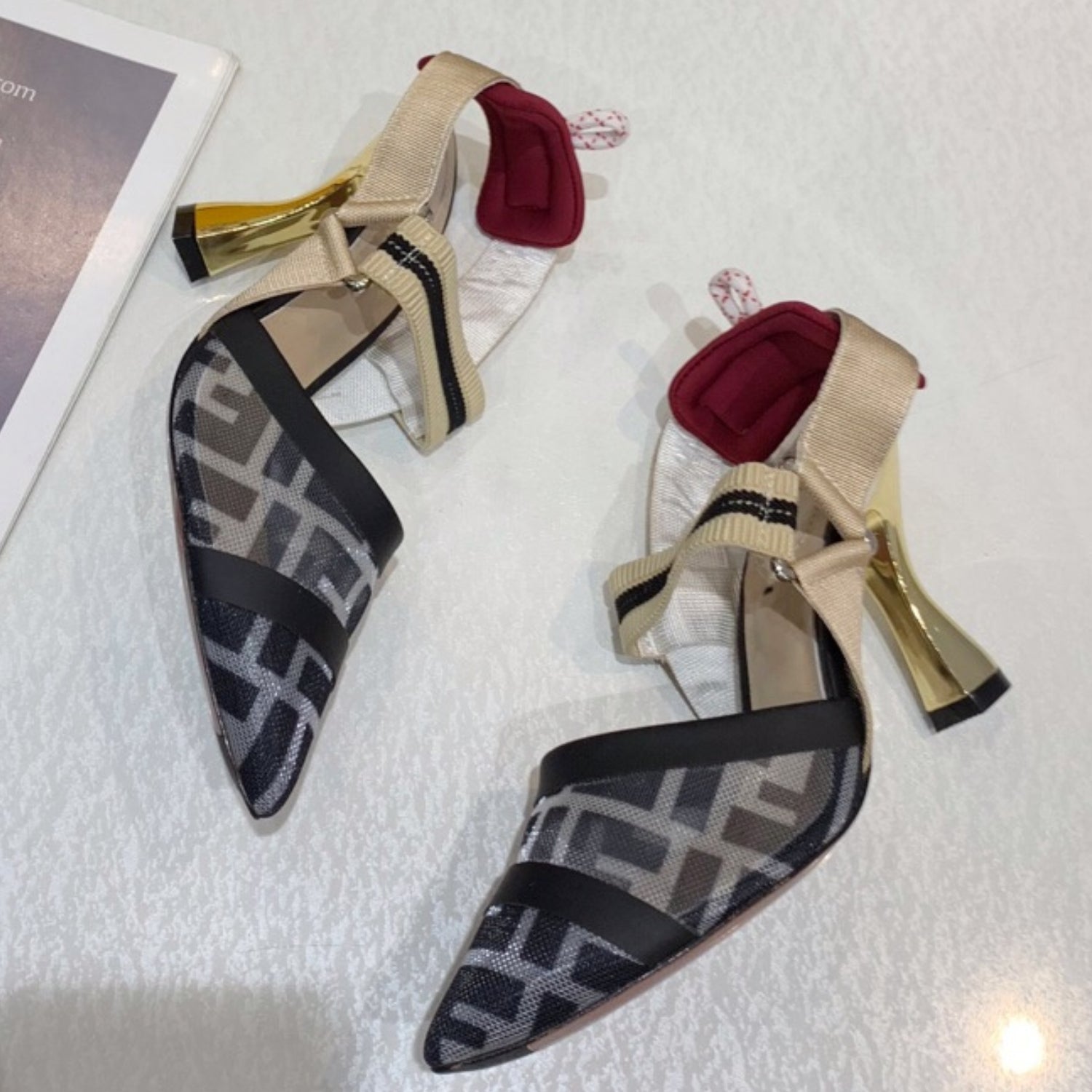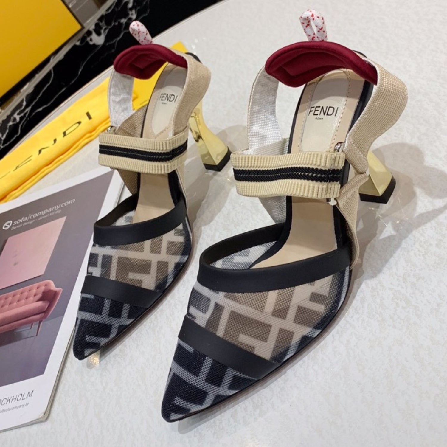 Scarpin FND Preto com Bege com Canvas couro e salto dourado 9,5cm