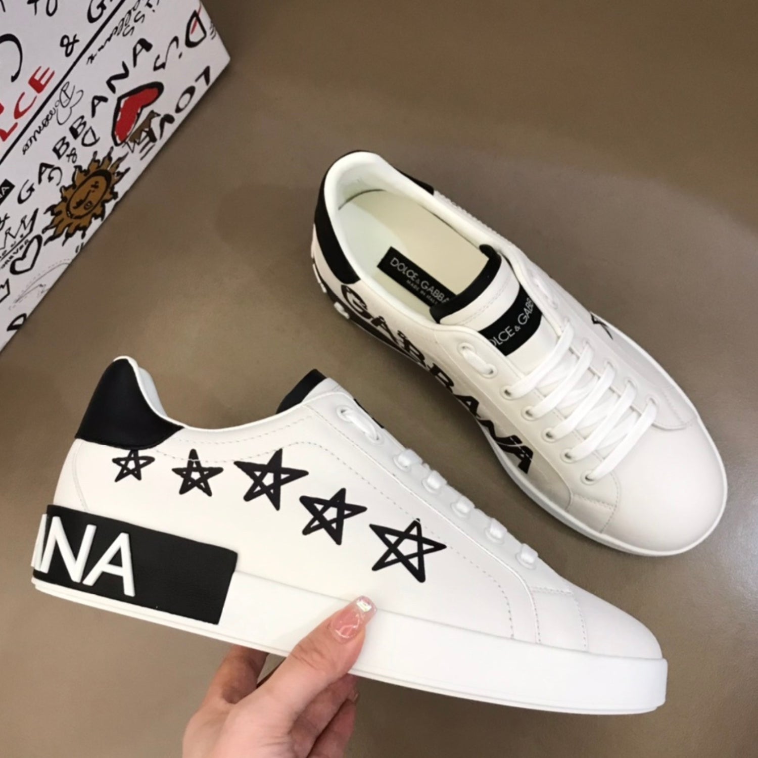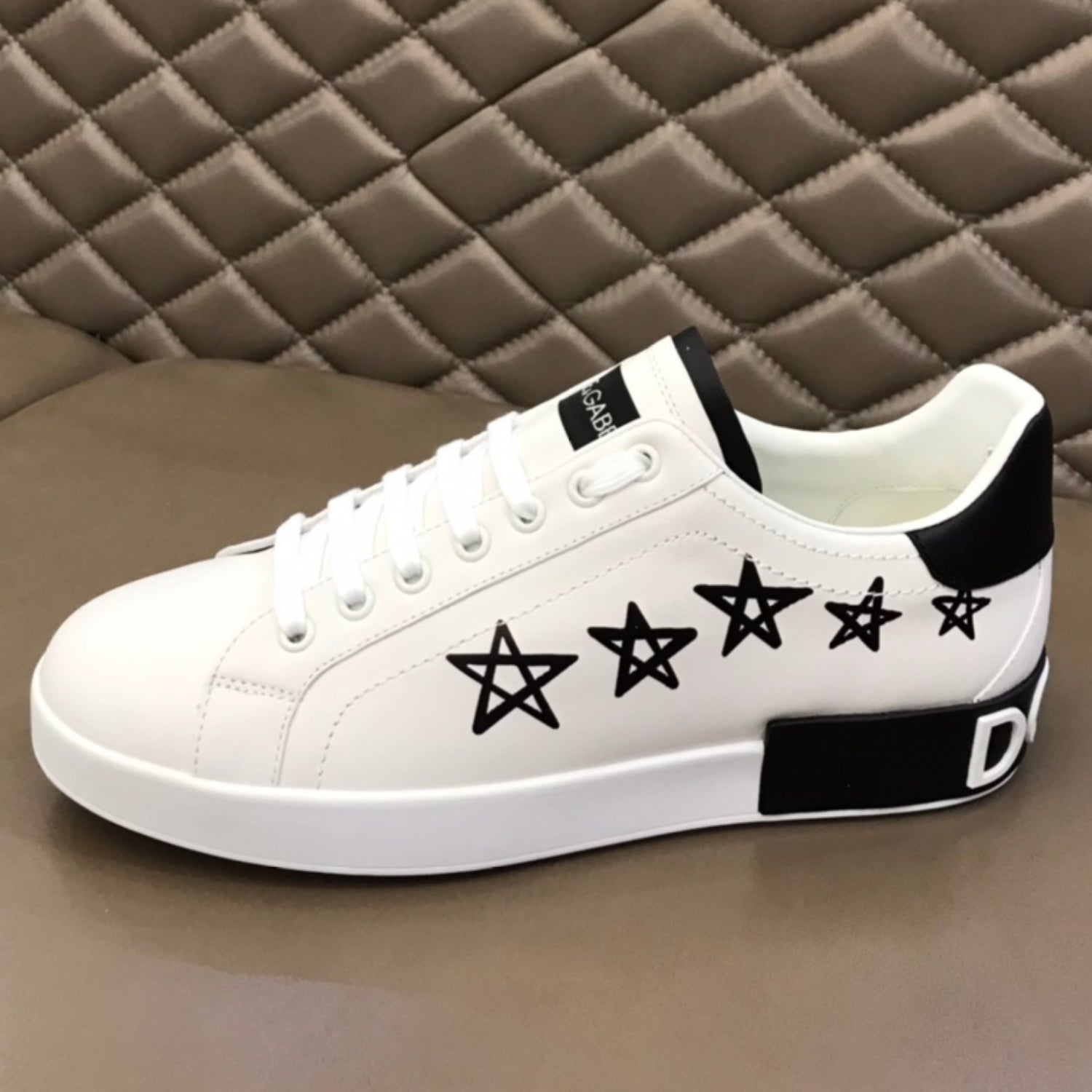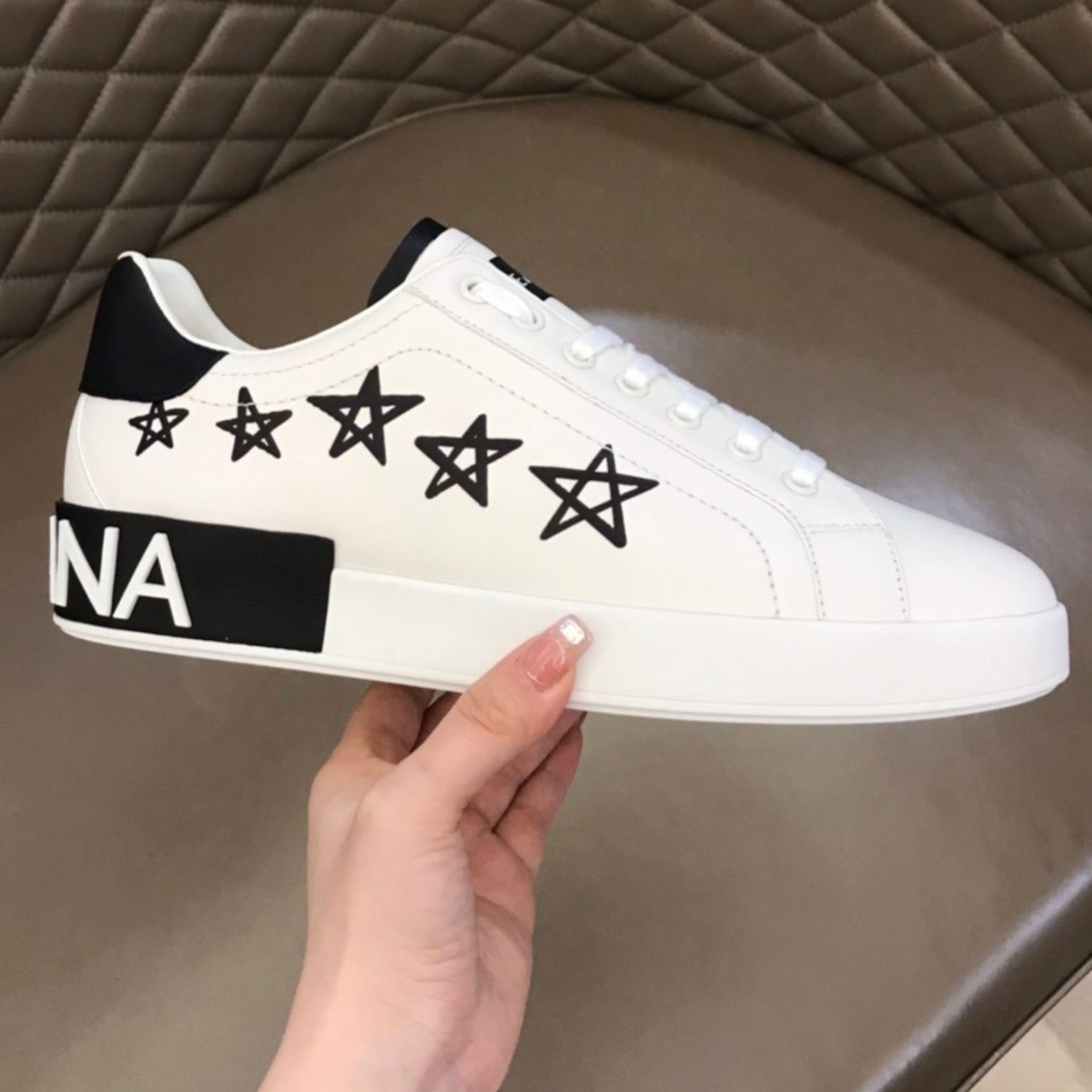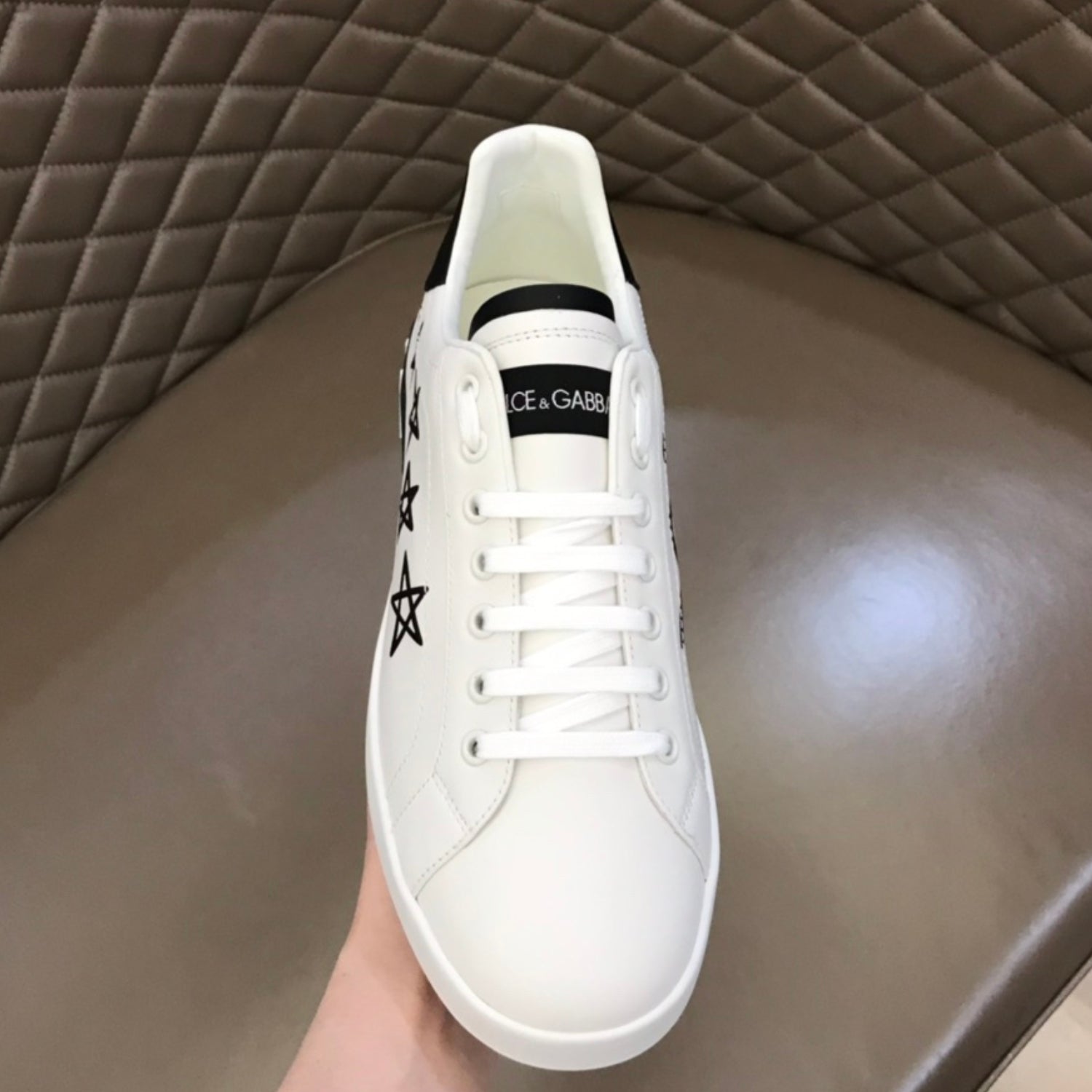 Tenis DG Portofino Couro Branco com Preto e Detalhes em Estrela