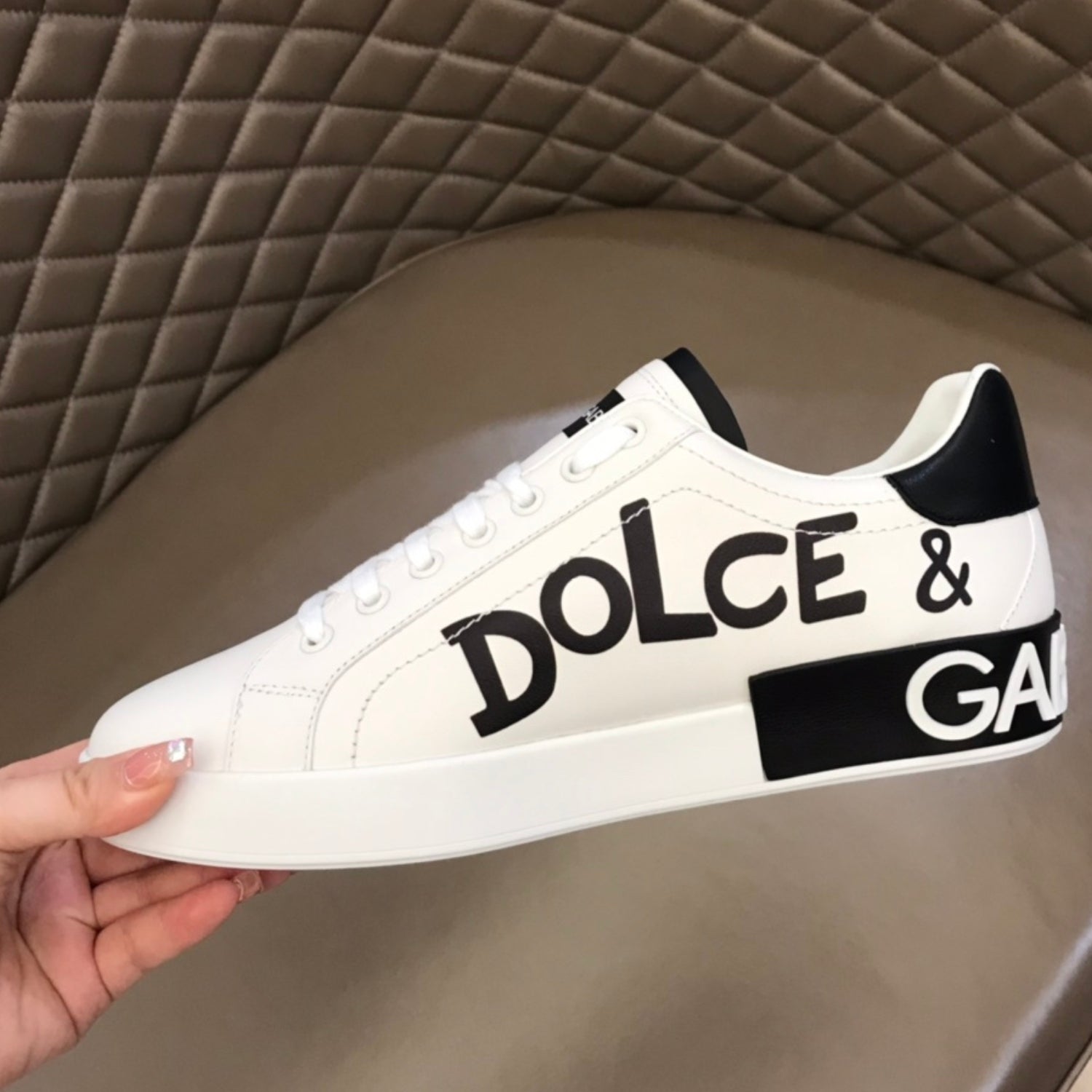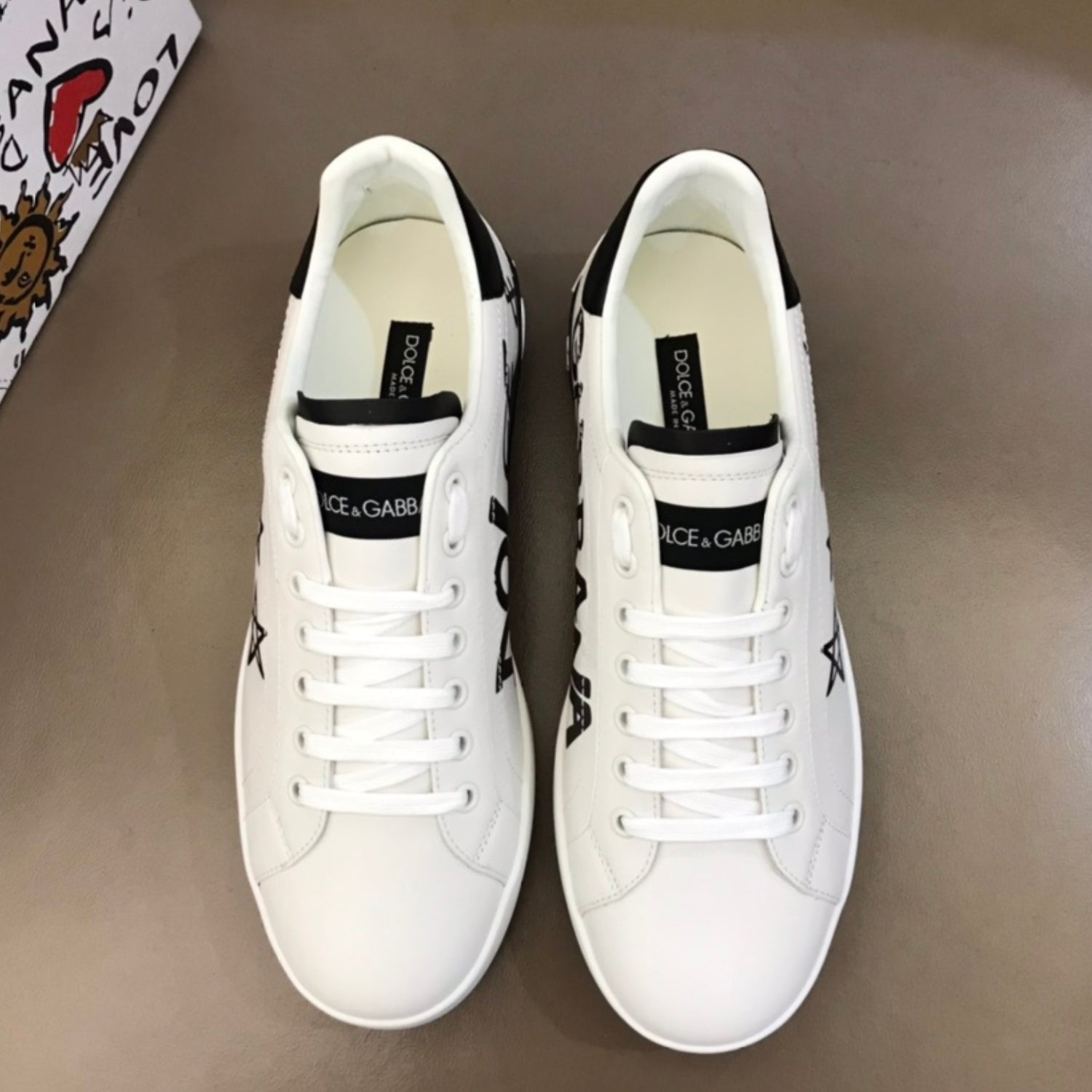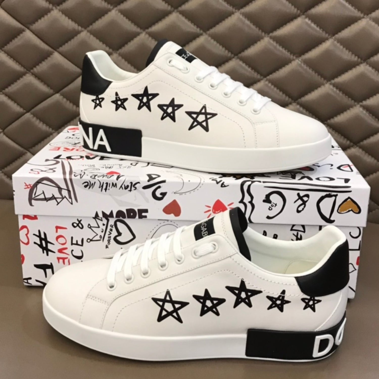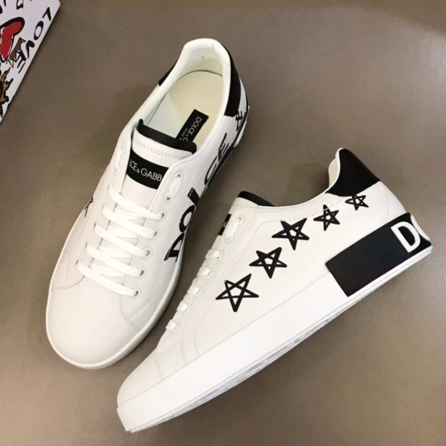 Tenis DG Portofino Couro Branco com Preto e Detalhes em Estrela