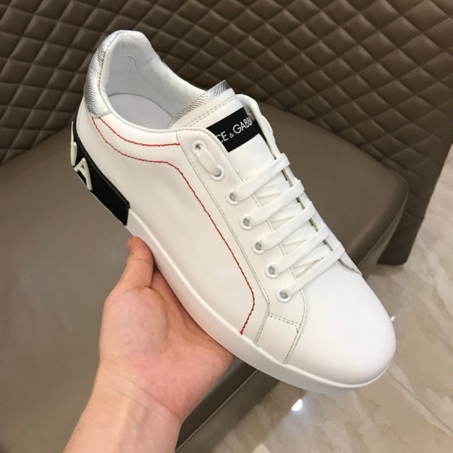 Tenis DG Portofino Couro Branco com Prata e Preto