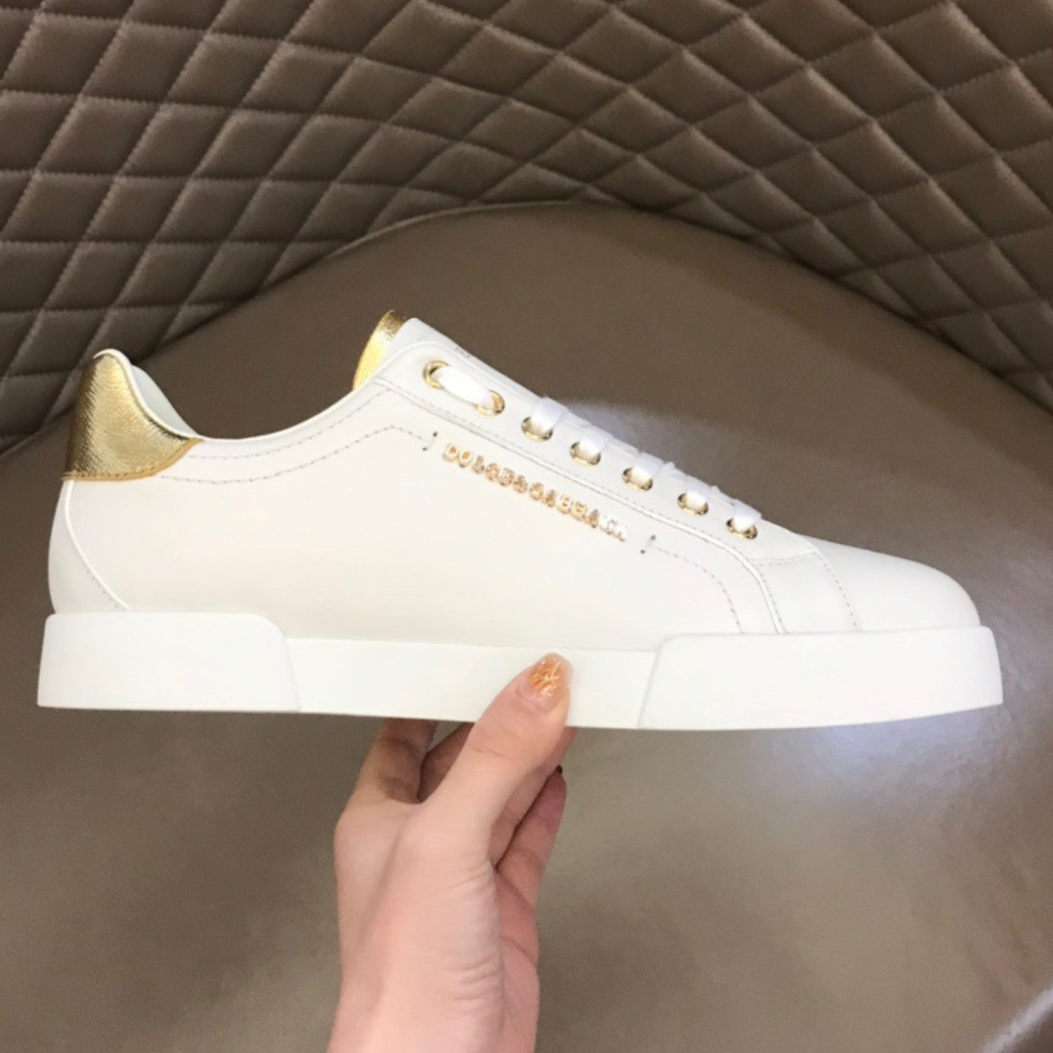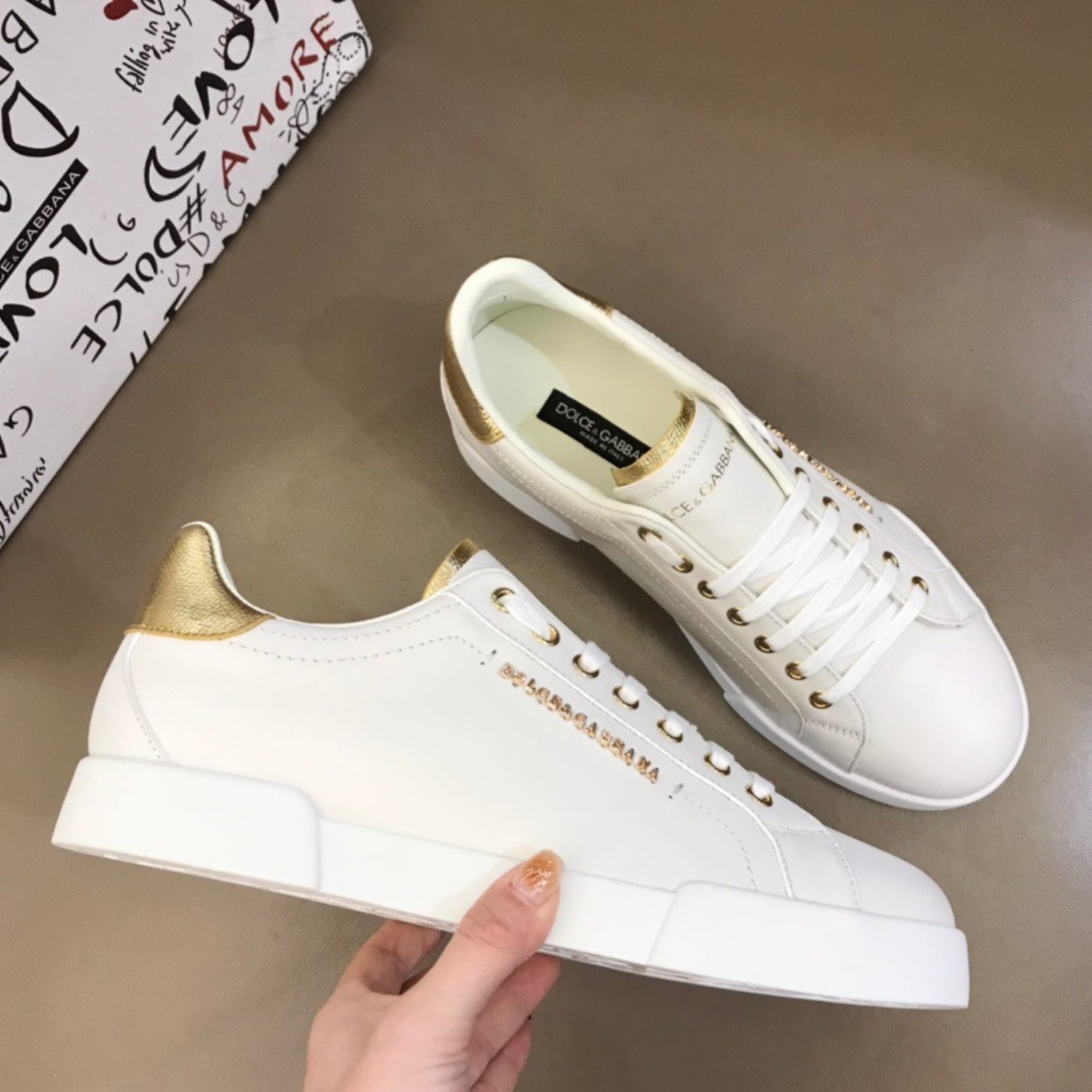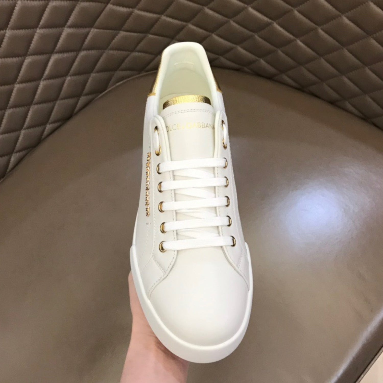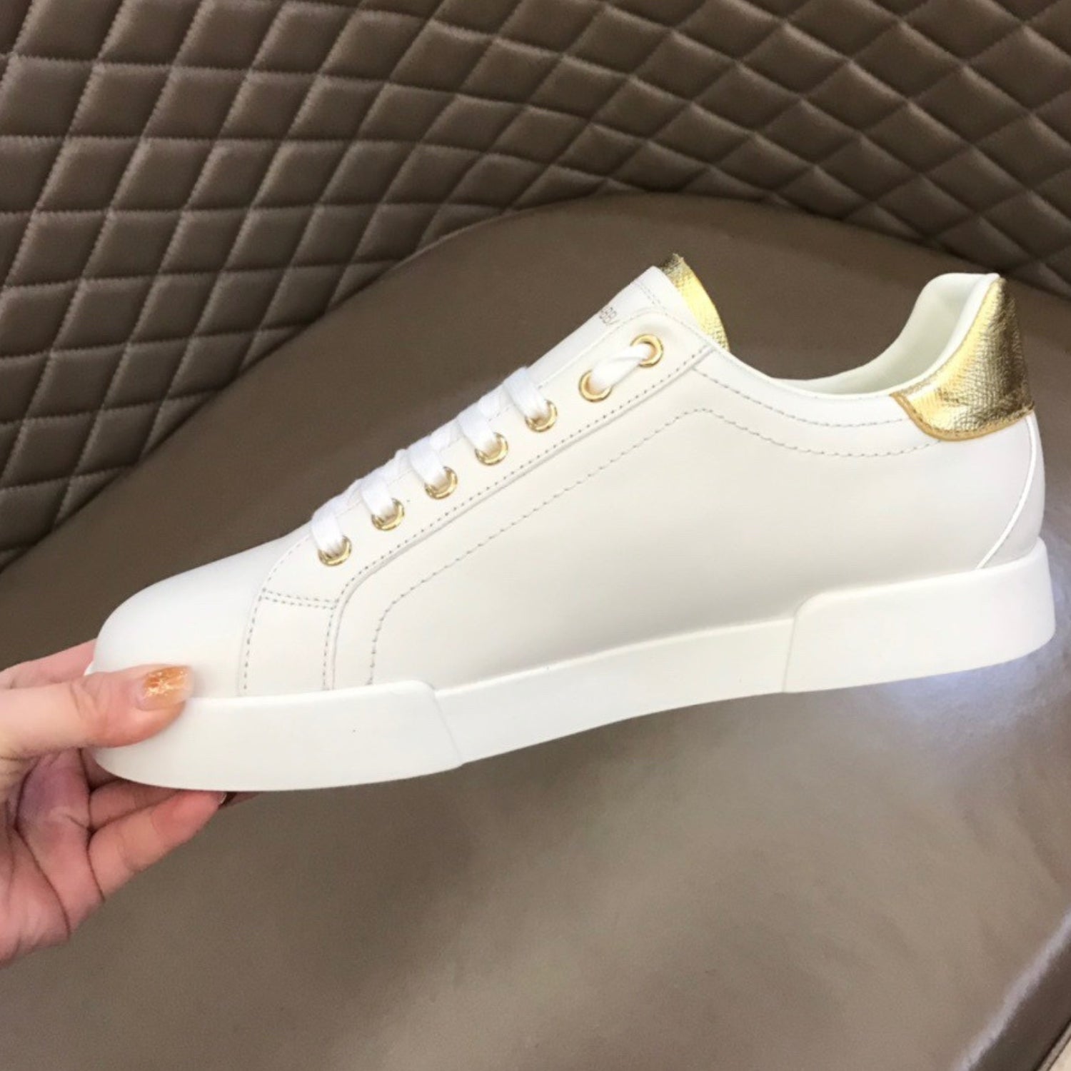 Tenis DG Portofino Couro Liso Branco com Dourado