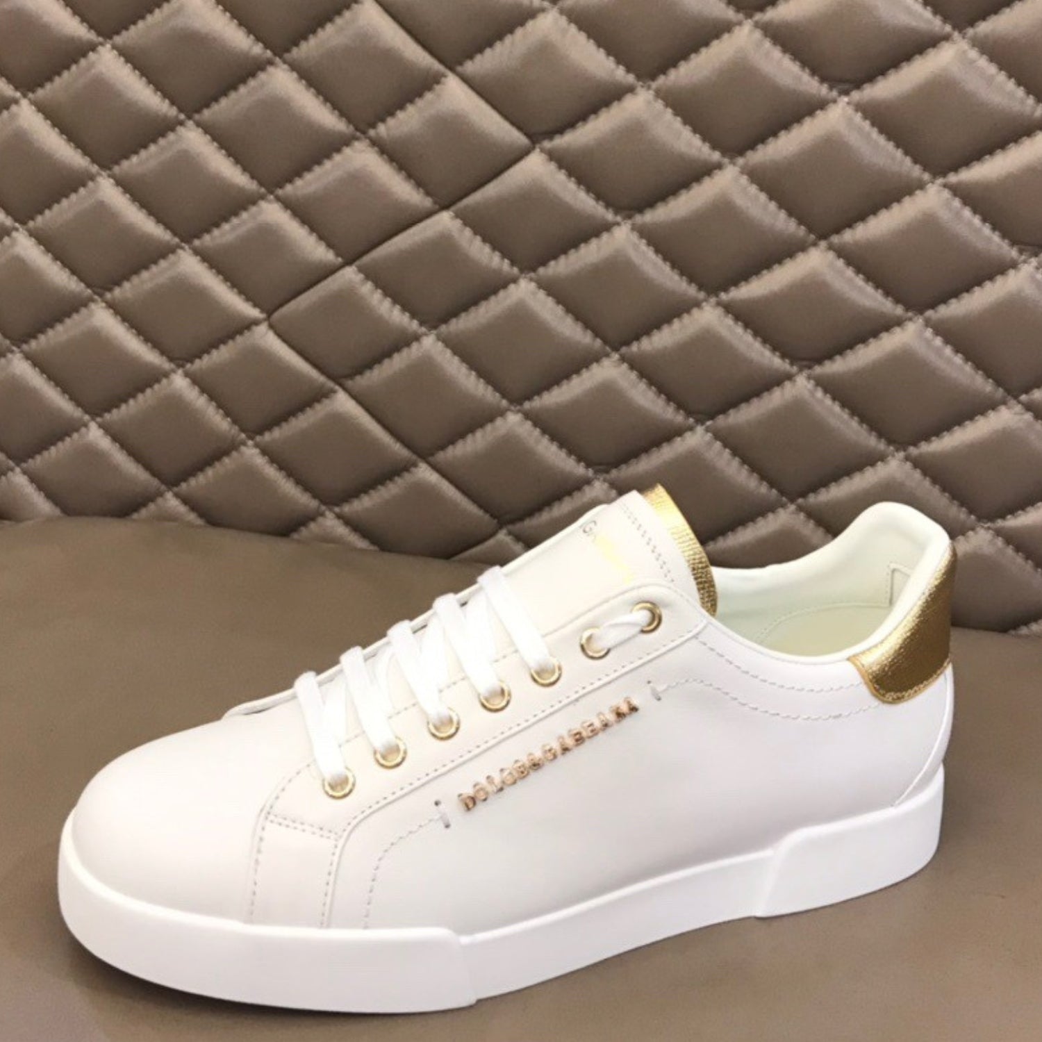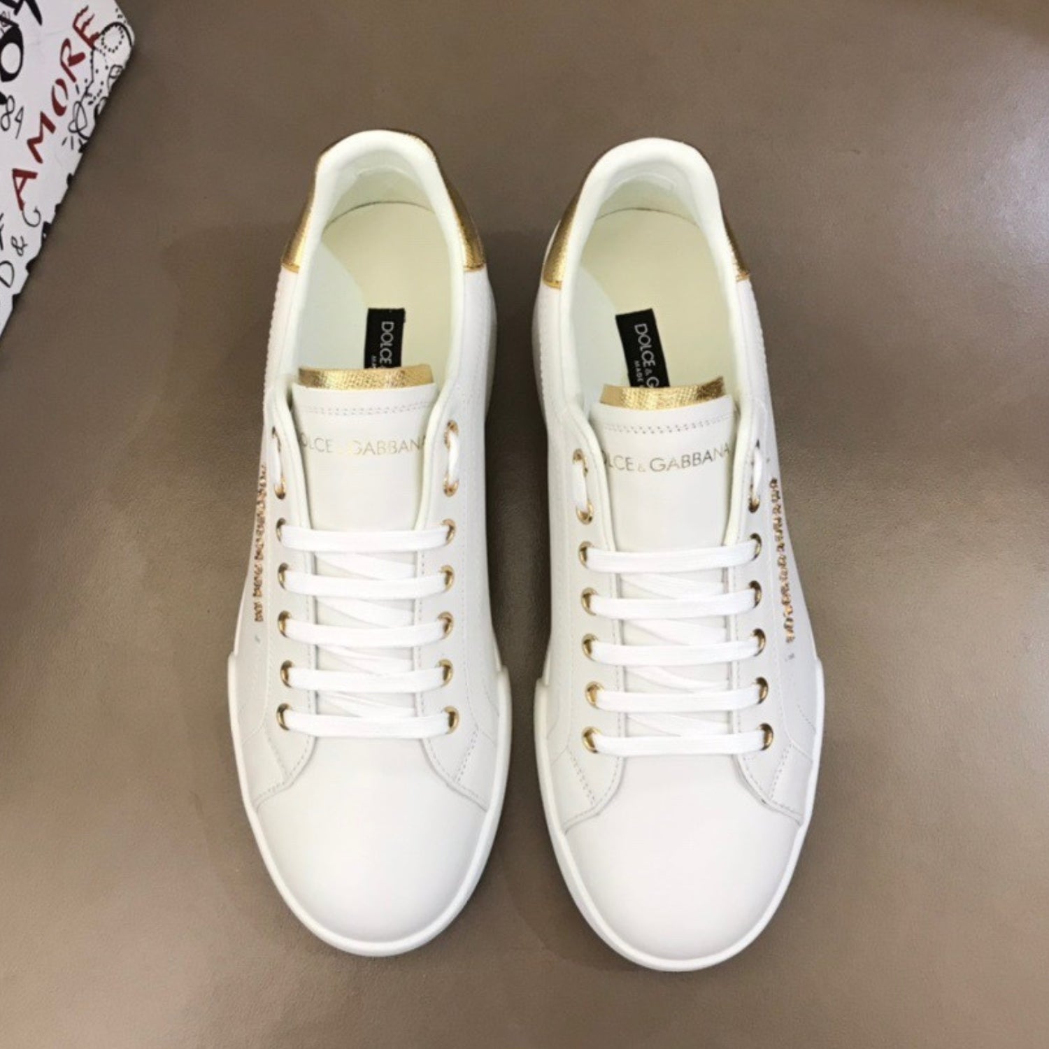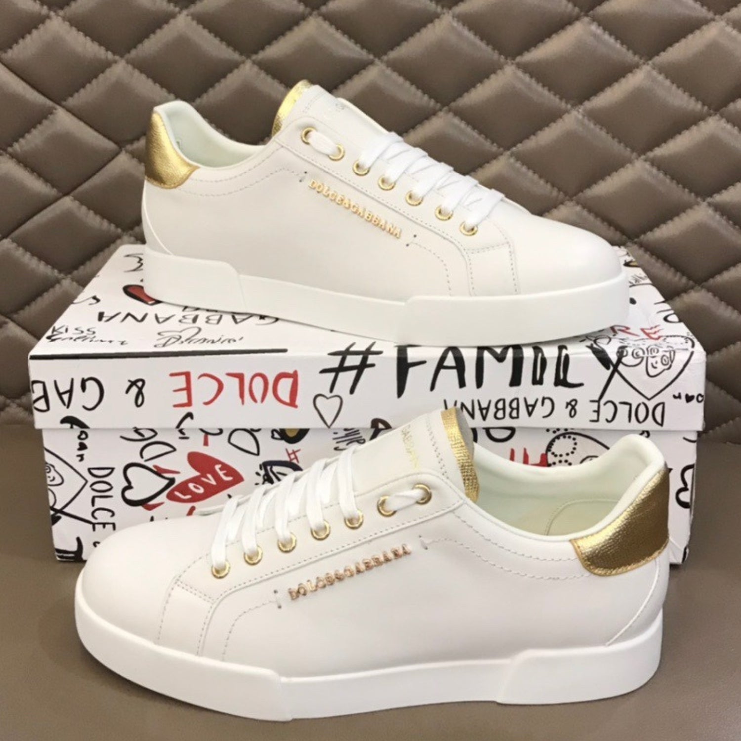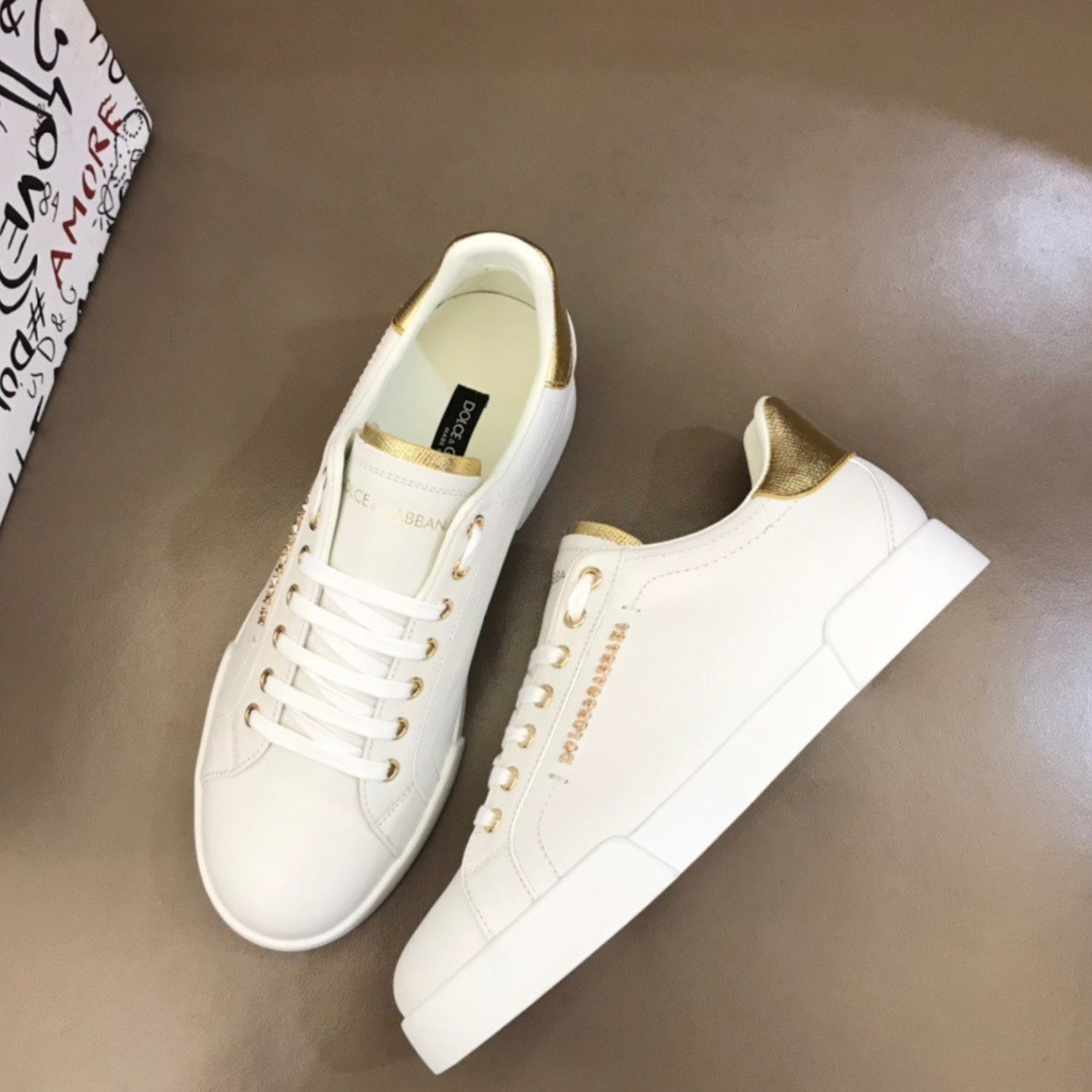 Tenis DG Portofino Couro Liso Branco com Dourado