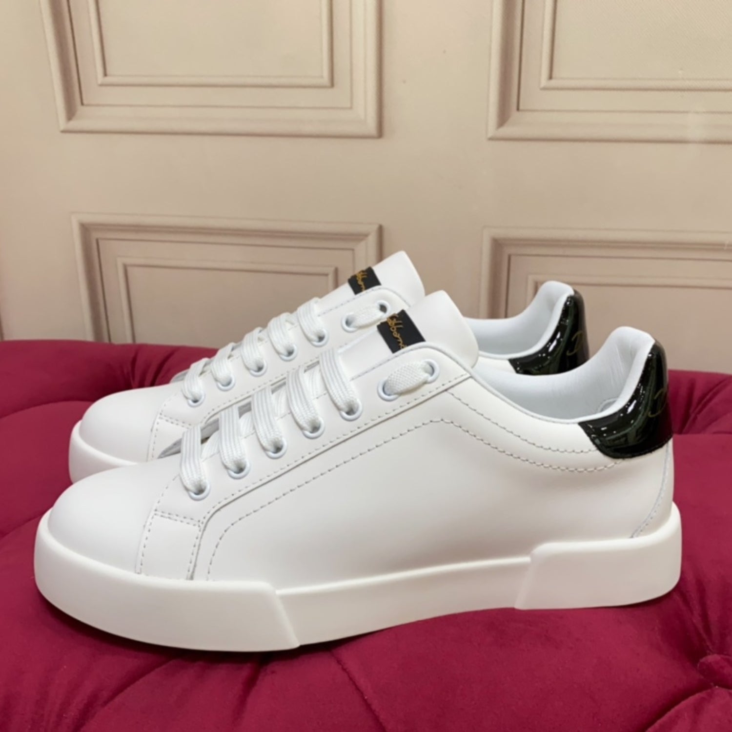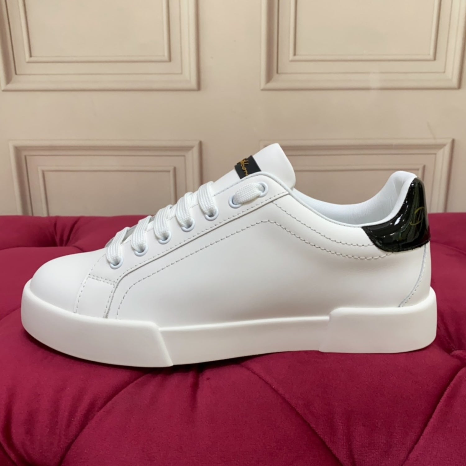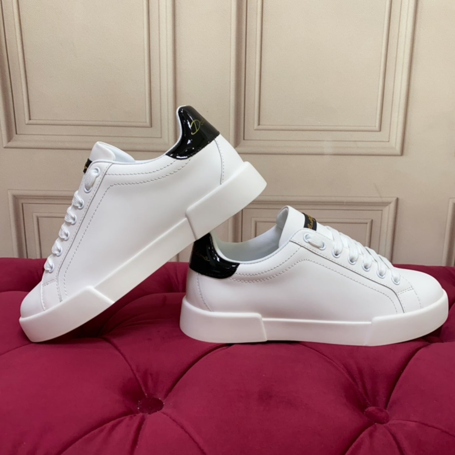 Tenis DG Portofino Couro Liso Branco com Preto