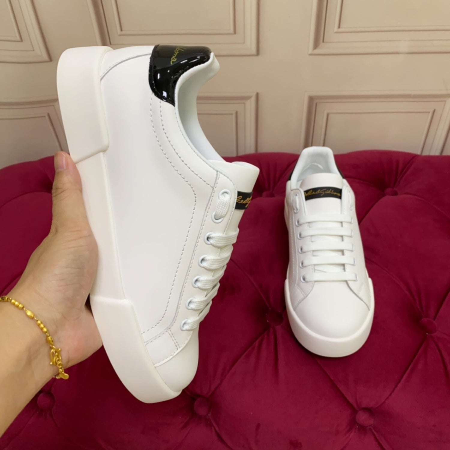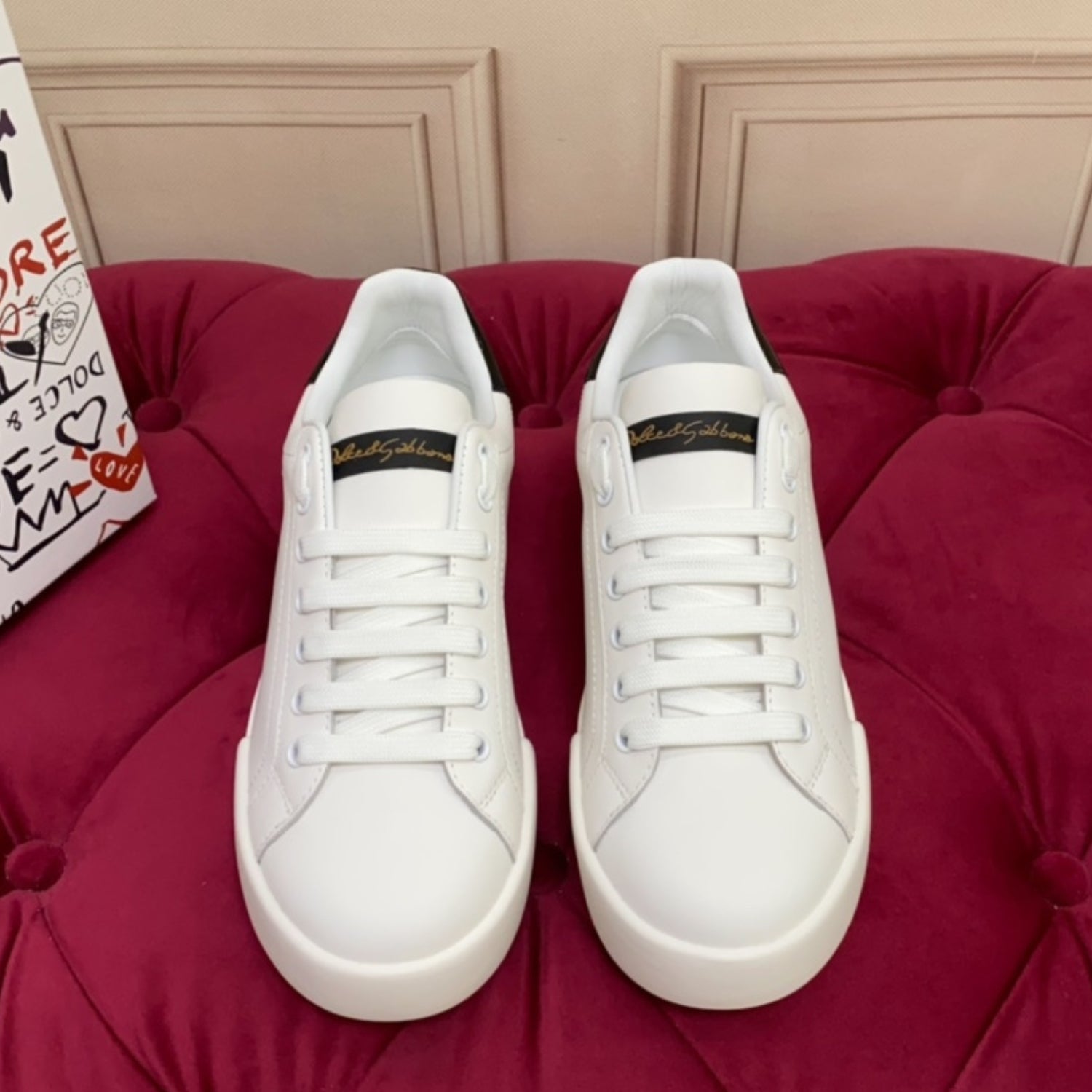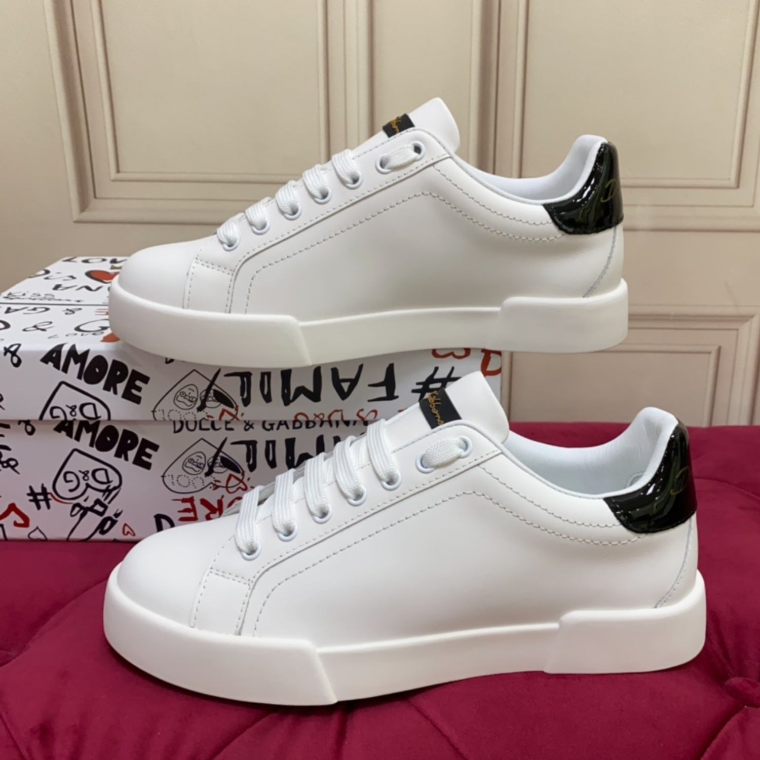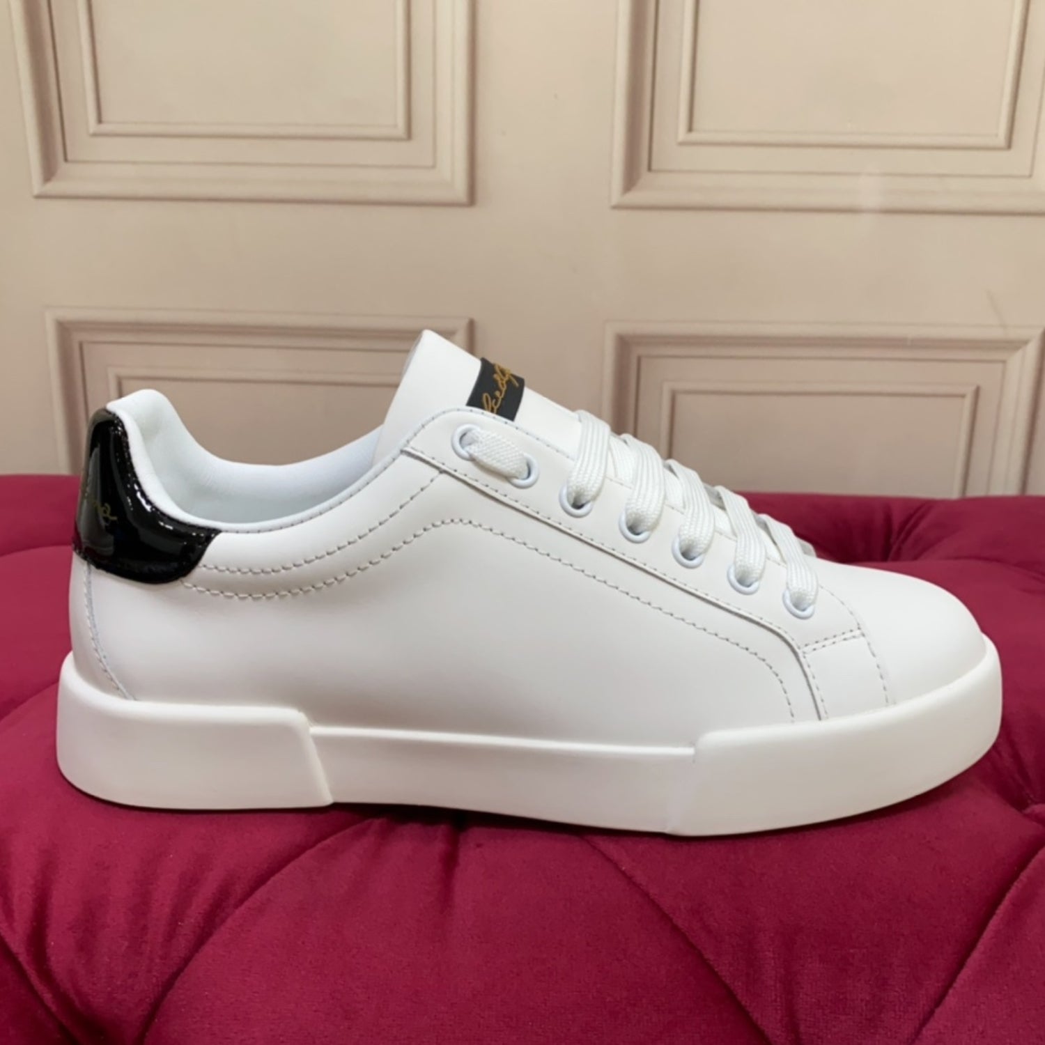 Tenis DG Portofino Couro Liso Branco com Preto