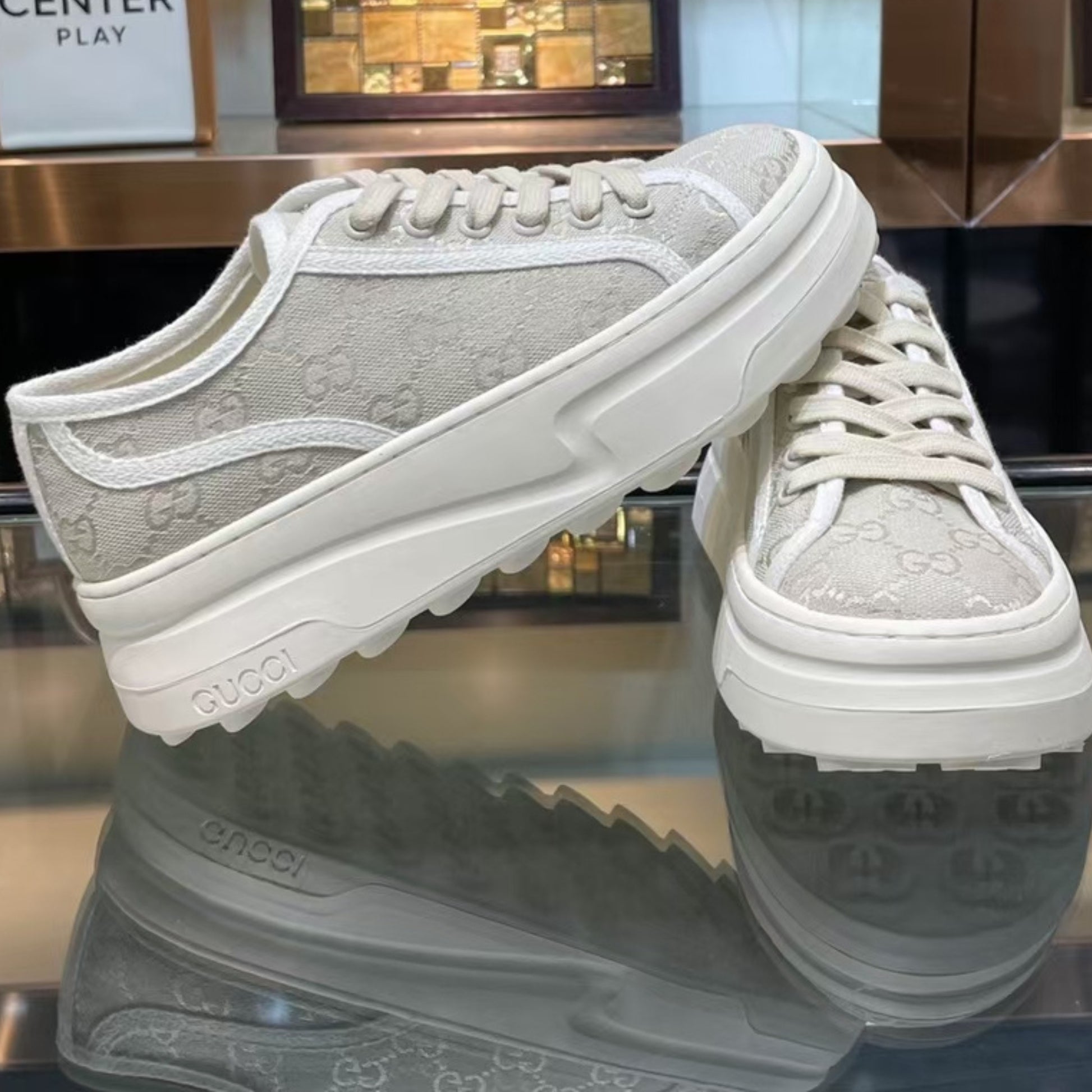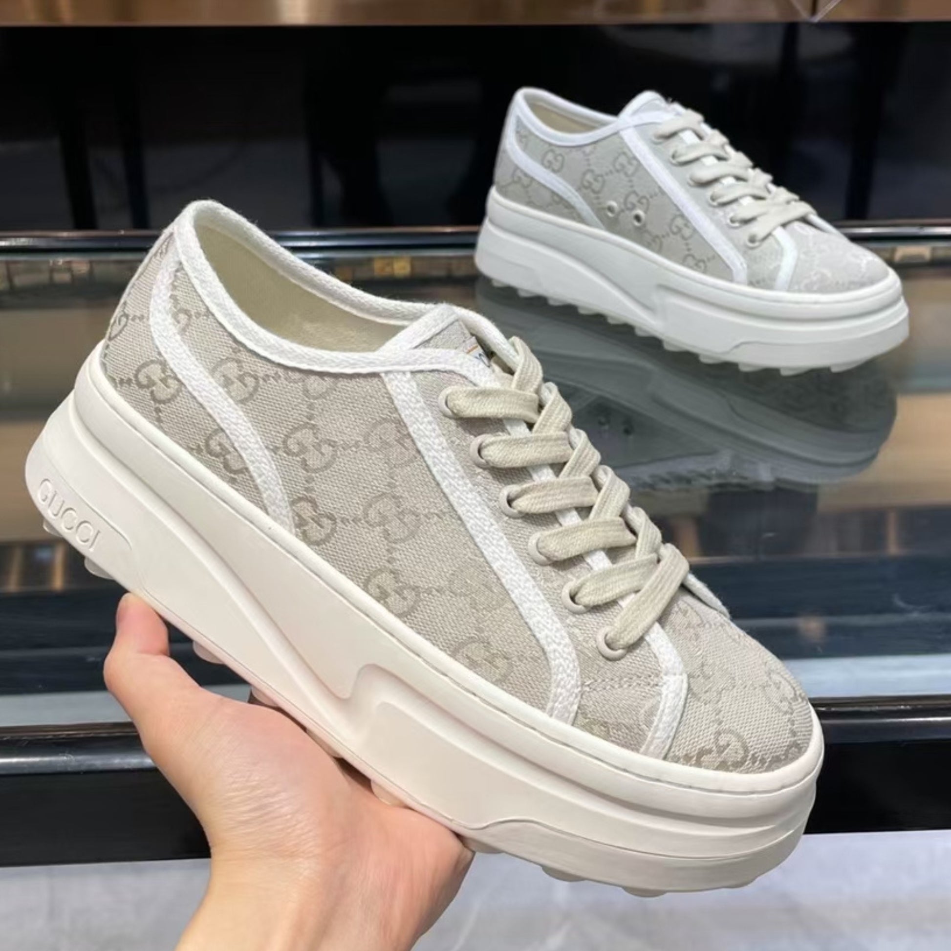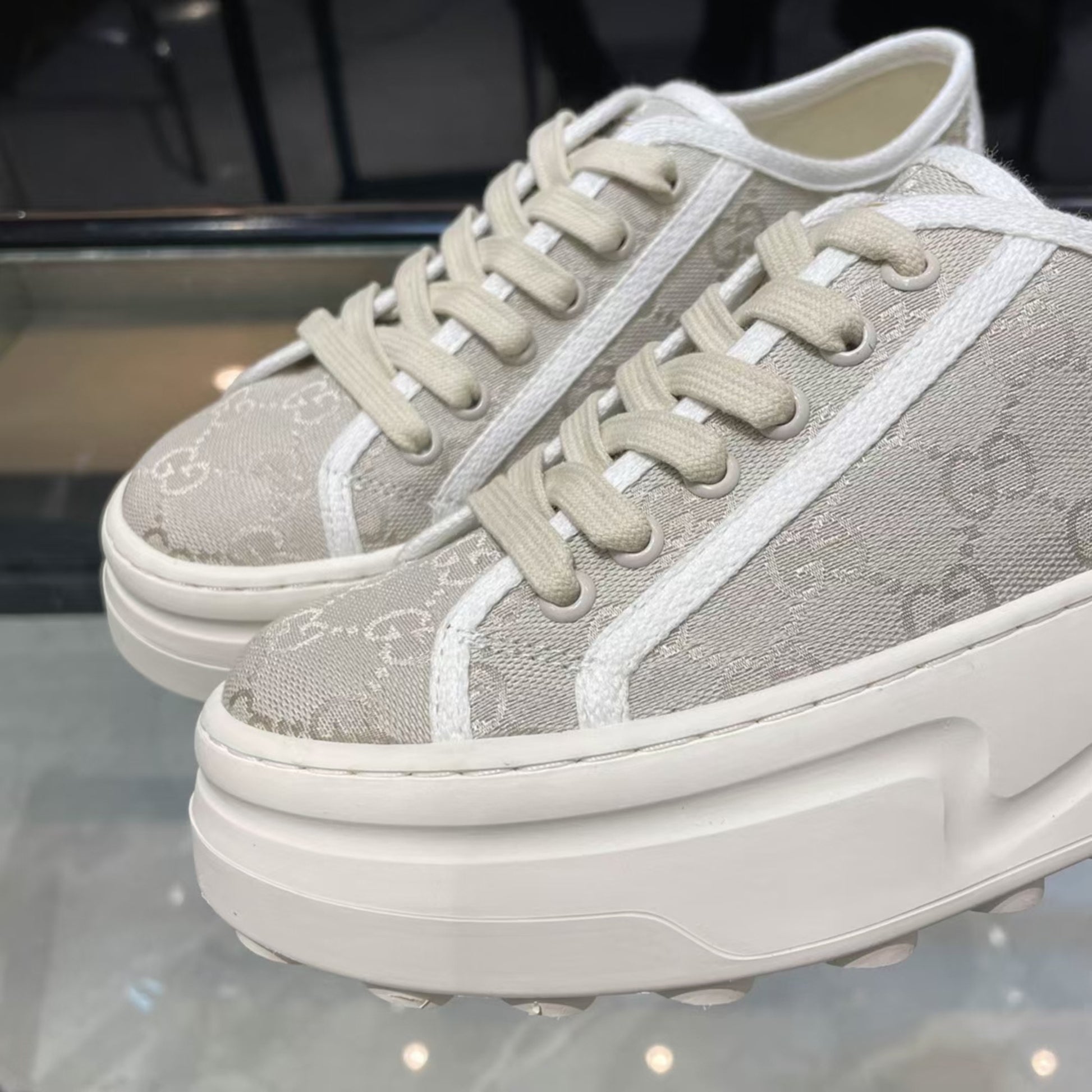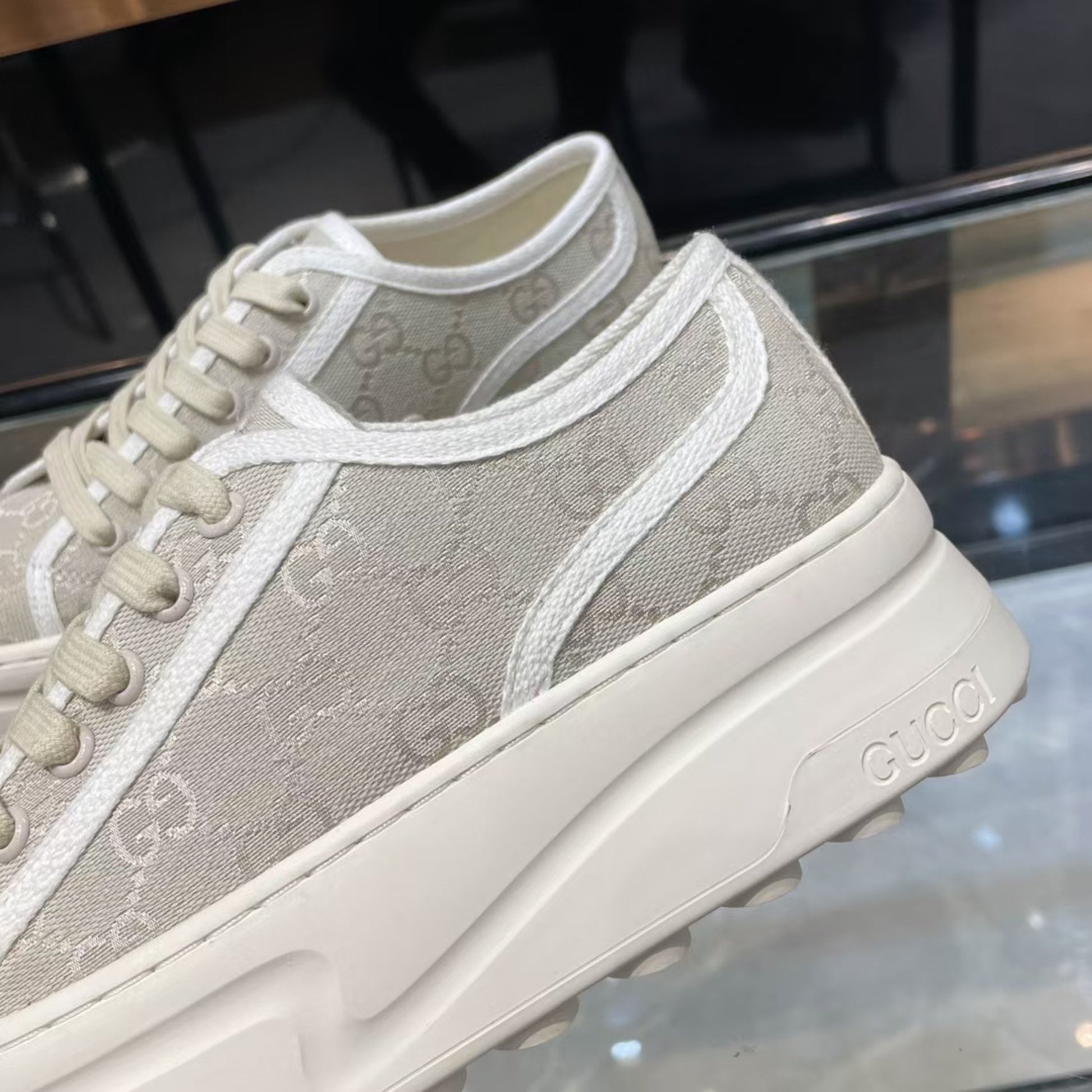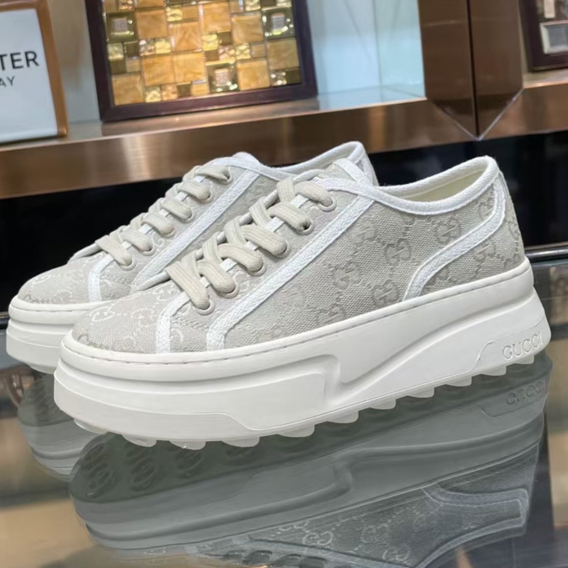 Tênis Sneaker GG Canvas Cinza Detalhes Branco